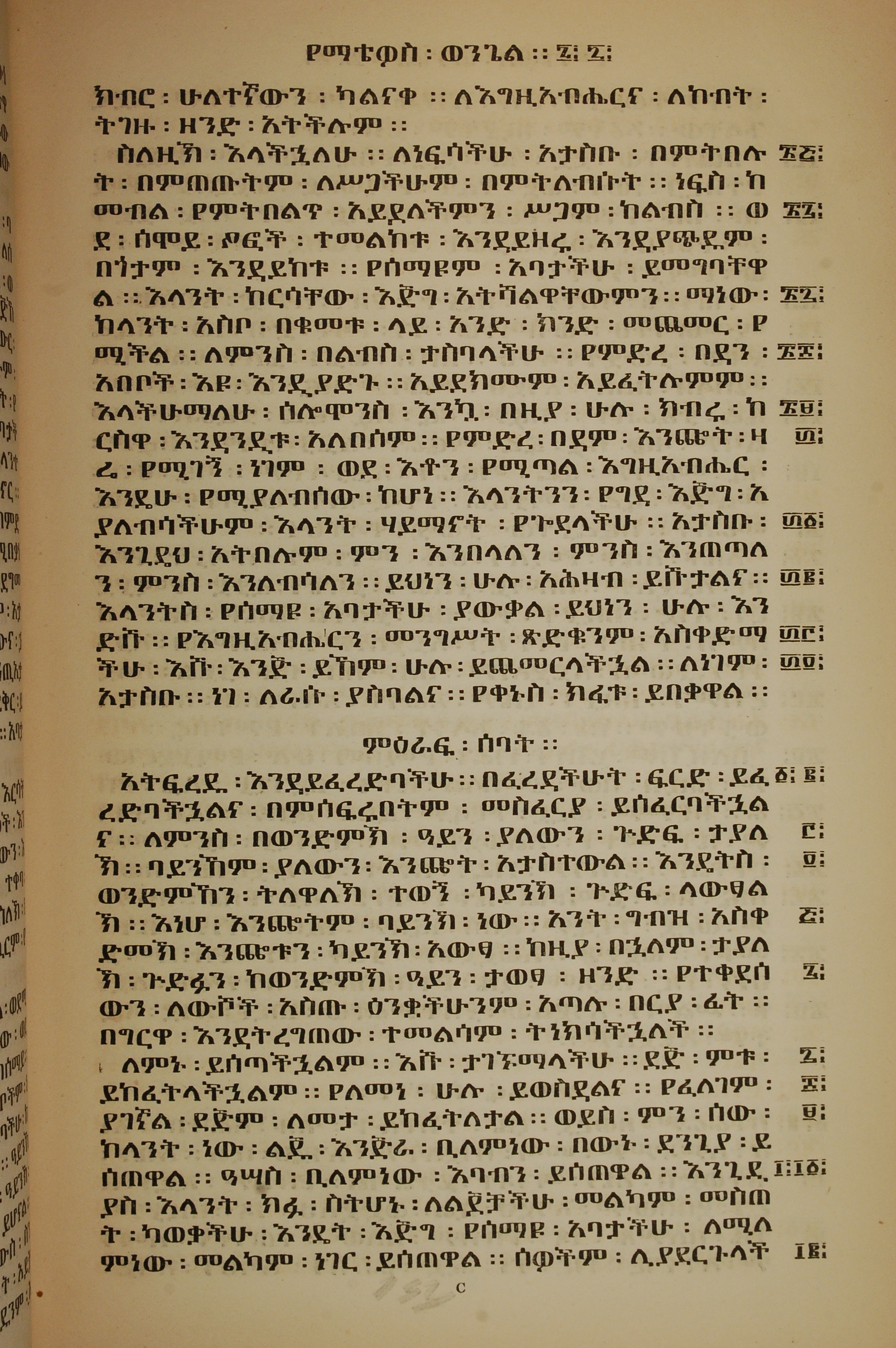 1852年吉茲語新約全書 馬太福音 6 章 25 節到 7 章 12 節