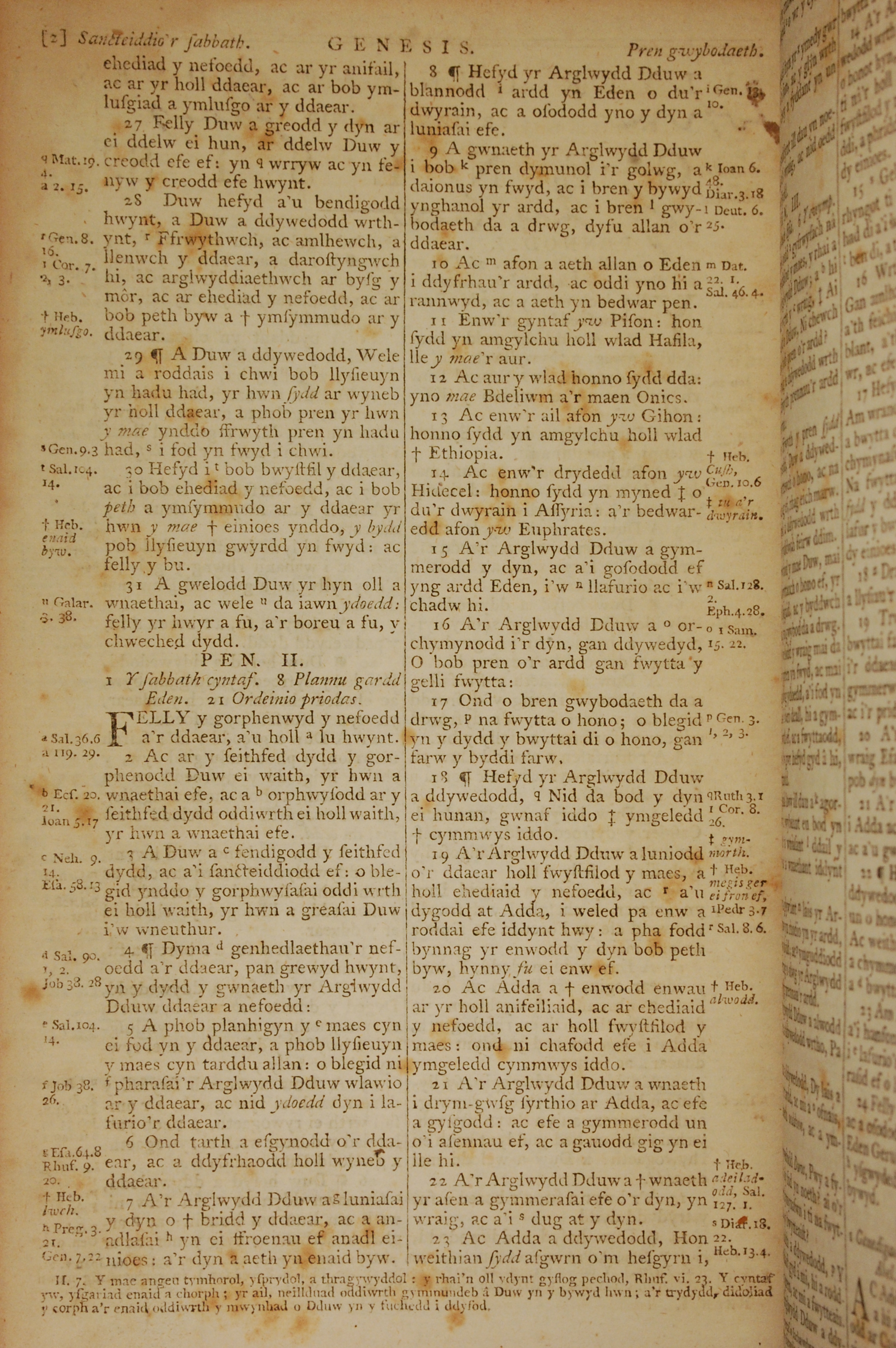 1796年威爾斯文新舊約全書 創世記 1 章 27 節到 2 章 23 節