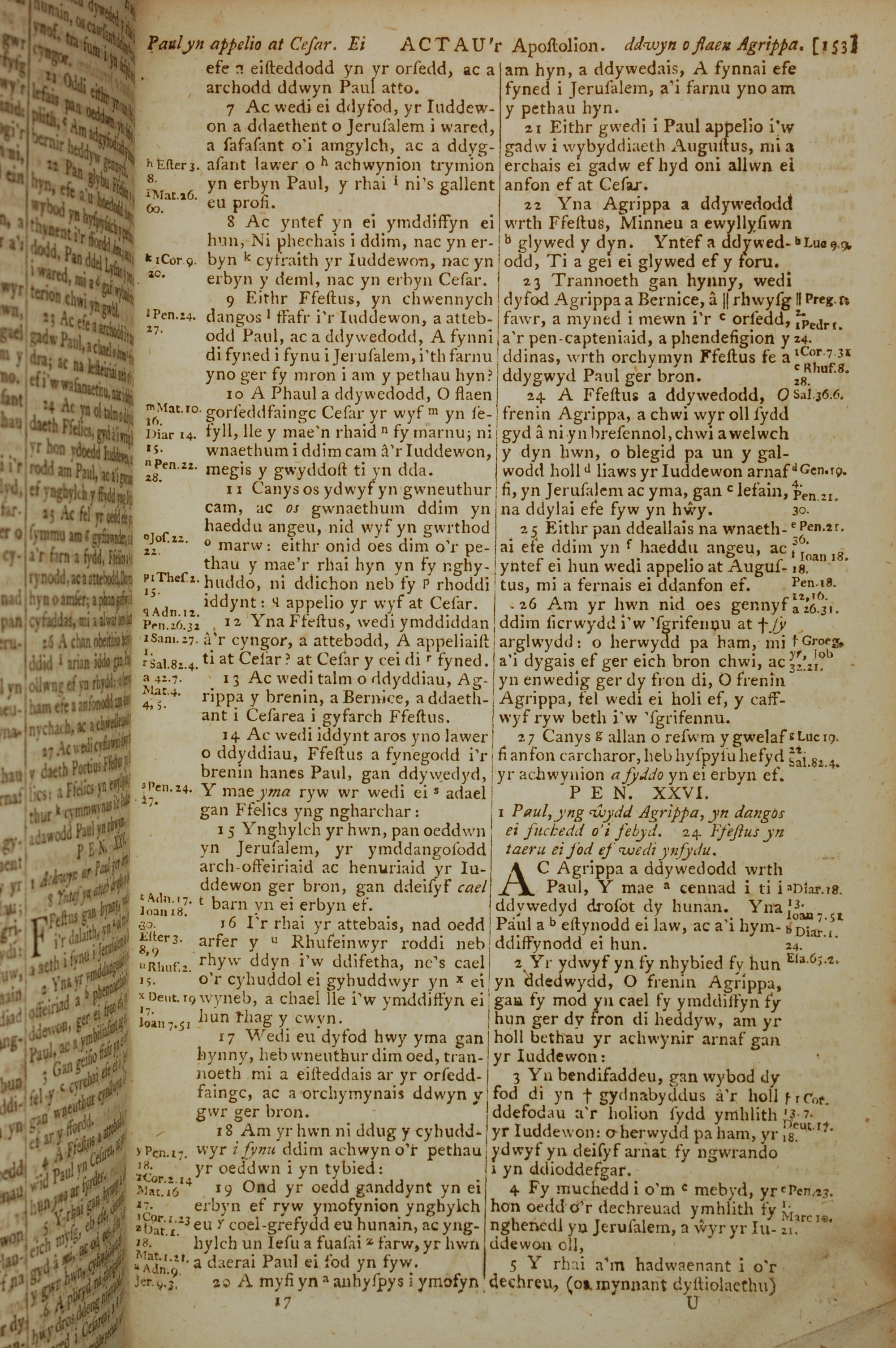 1796年威爾斯文新舊約全書 使徒行傳 25 章 7 節到 26 章 5 節