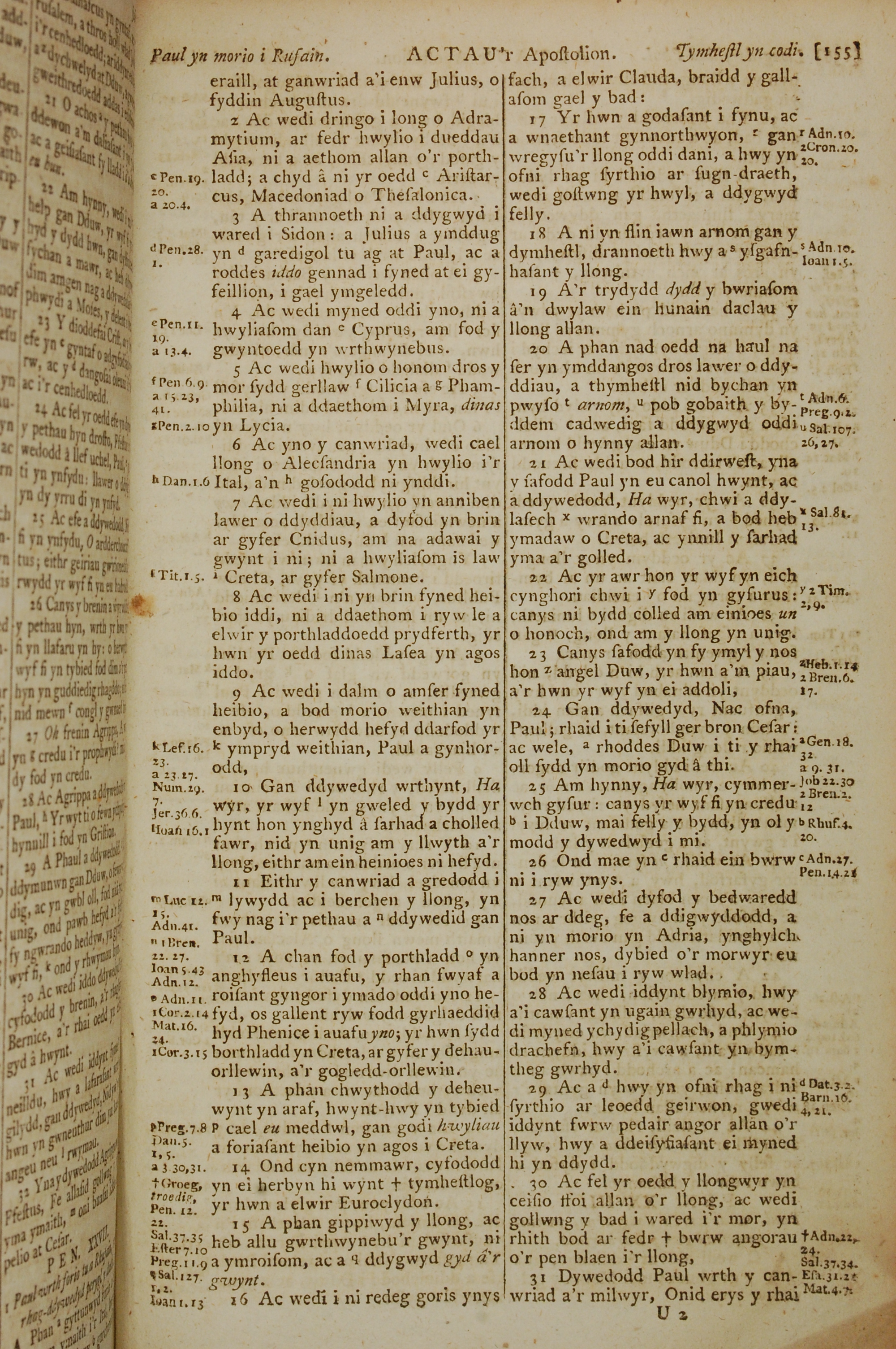 1796年威爾斯文新舊約全書 使徒行傳 27 章 2 節到 27 章 31 節
