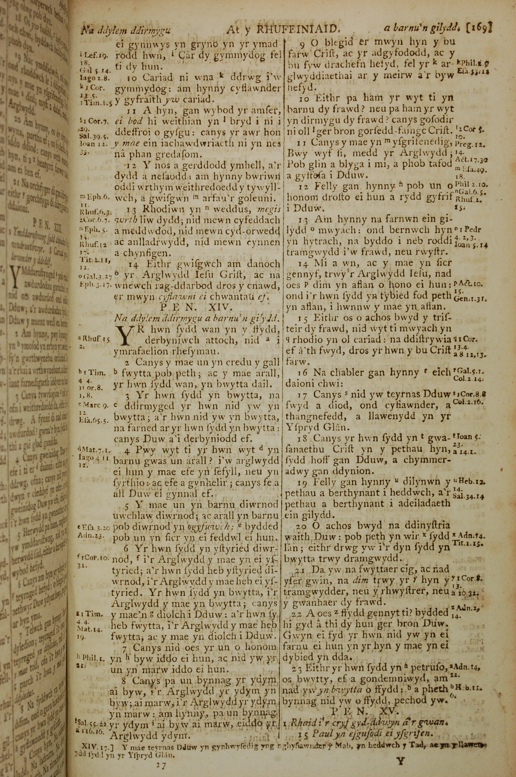 1796年威爾斯文新舊約全書 羅馬書 13 章 10 節到 14 章 23 節