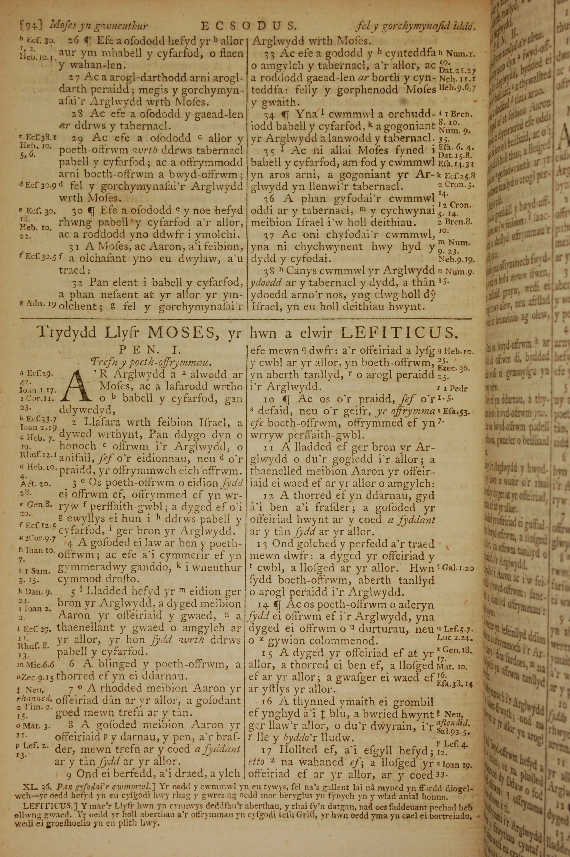 1796年威爾斯文新舊約全書 出埃及記 40 章 26 節到 40 章 38 節