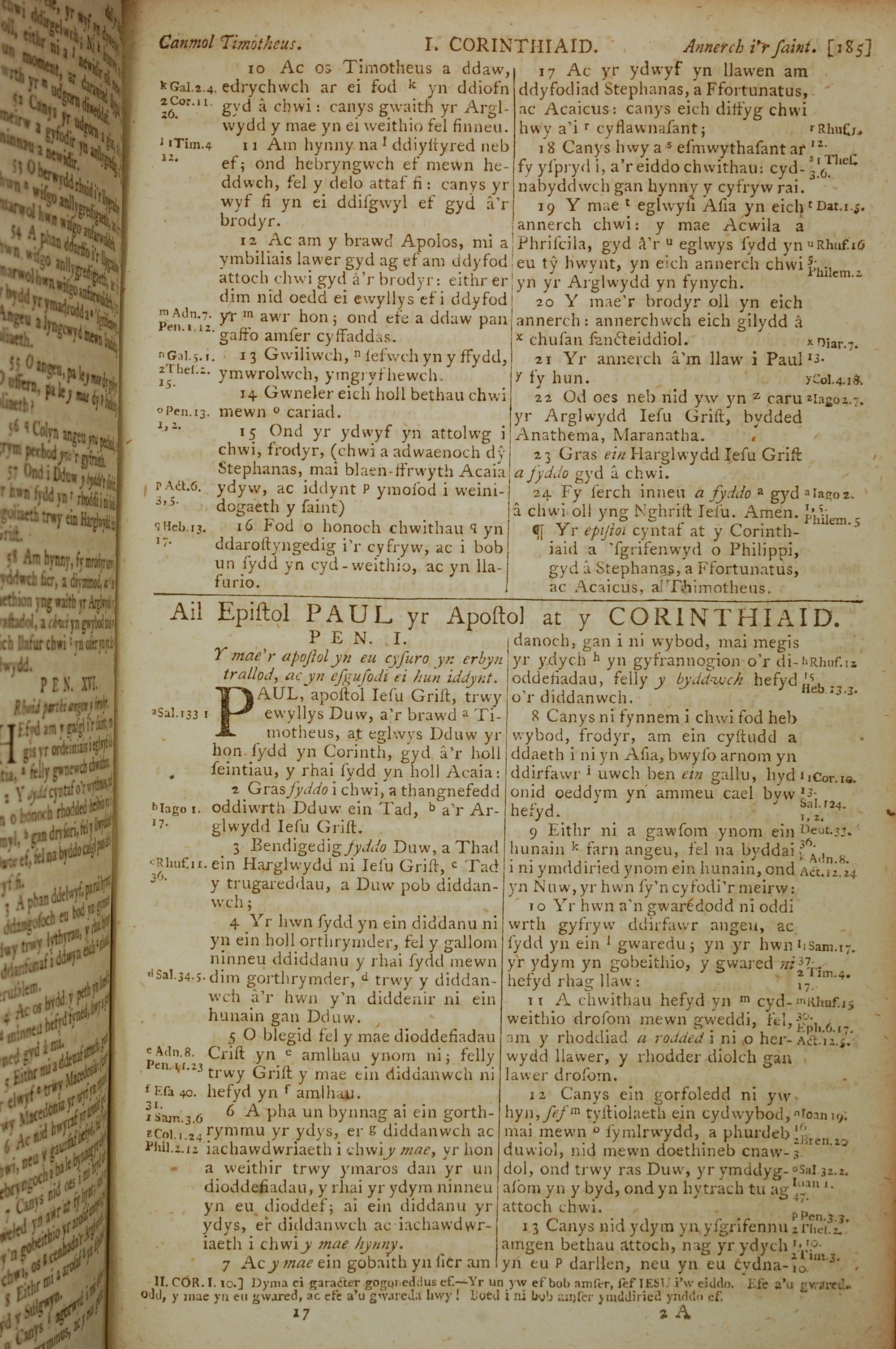 1796年威爾斯文新舊約全書 哥林多後書 1 章 1 節到 1 章 13 節