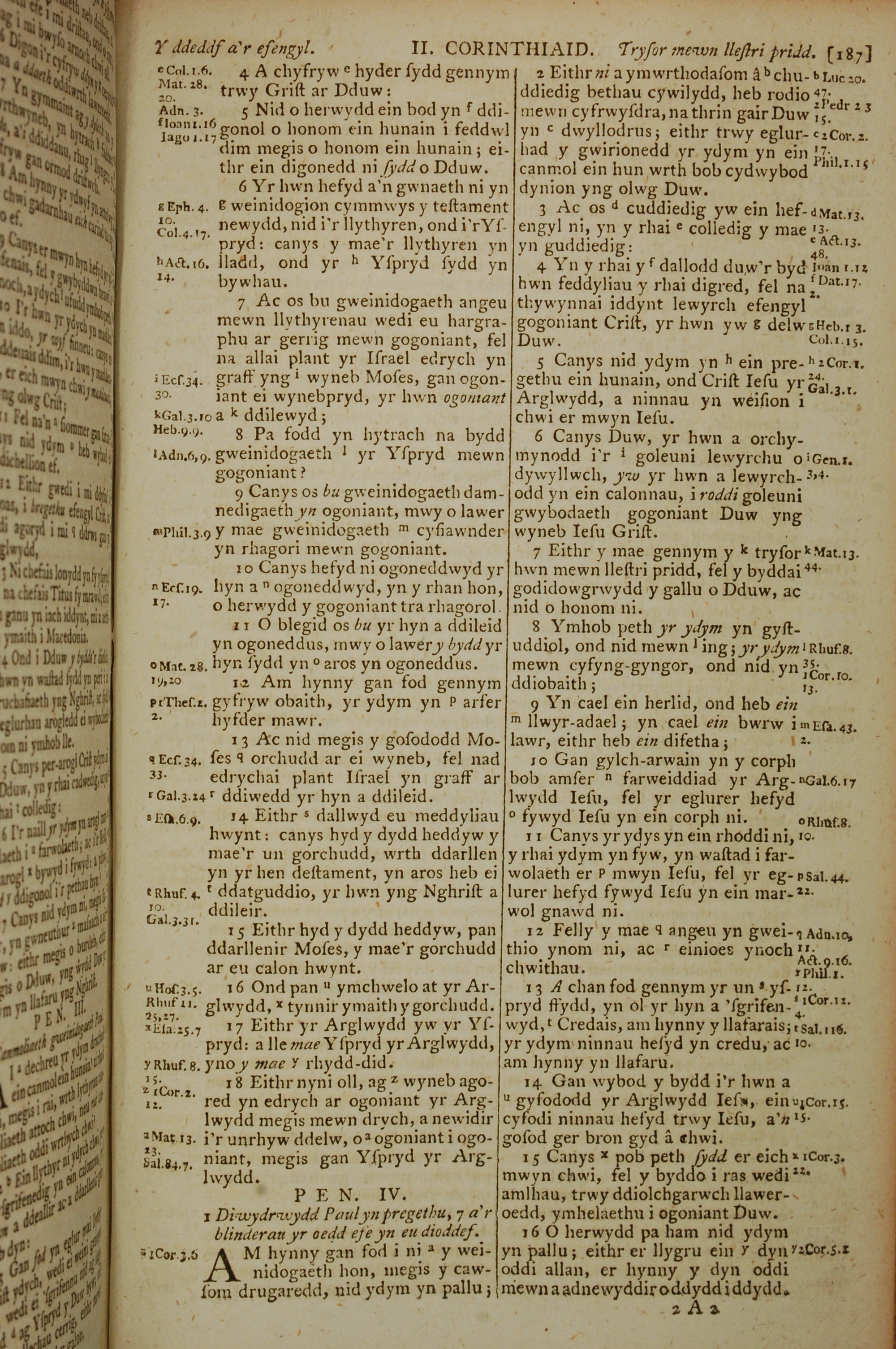 1796年威爾斯文新舊約全書 哥林多後書 3 章 4 節到 4 章 16 節