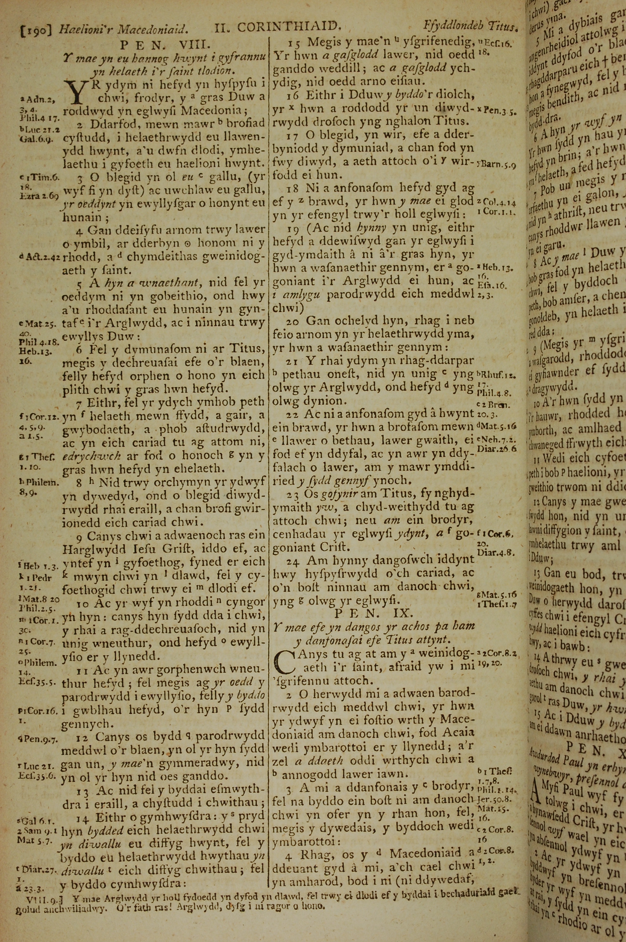 1796年威爾斯文新舊約全書 哥林多後書 8 章 1 節到 9 章 4 節