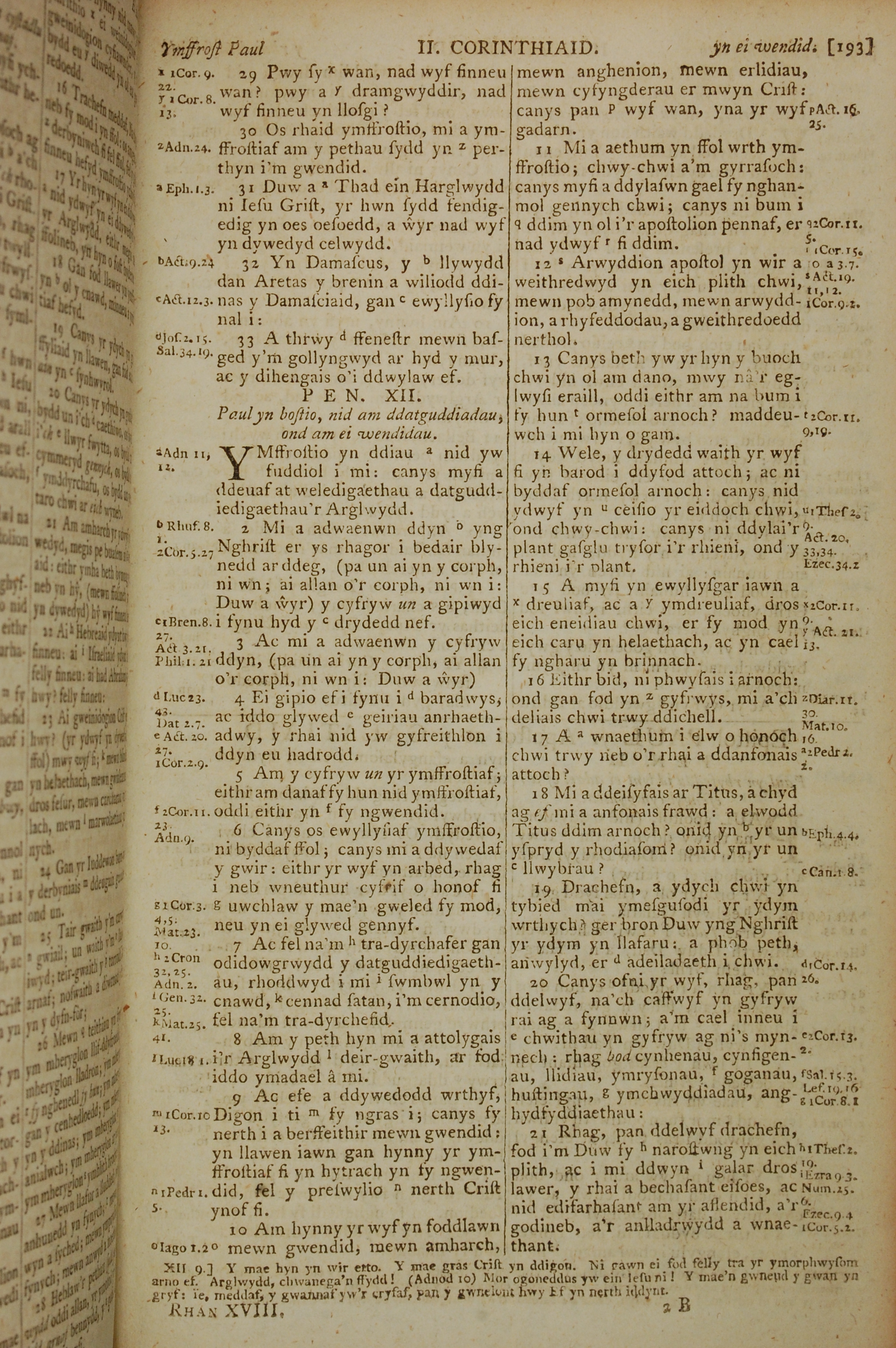 1796年威爾斯文新舊約全書 哥林多後書 11 章 29 節到 12 章 21 節