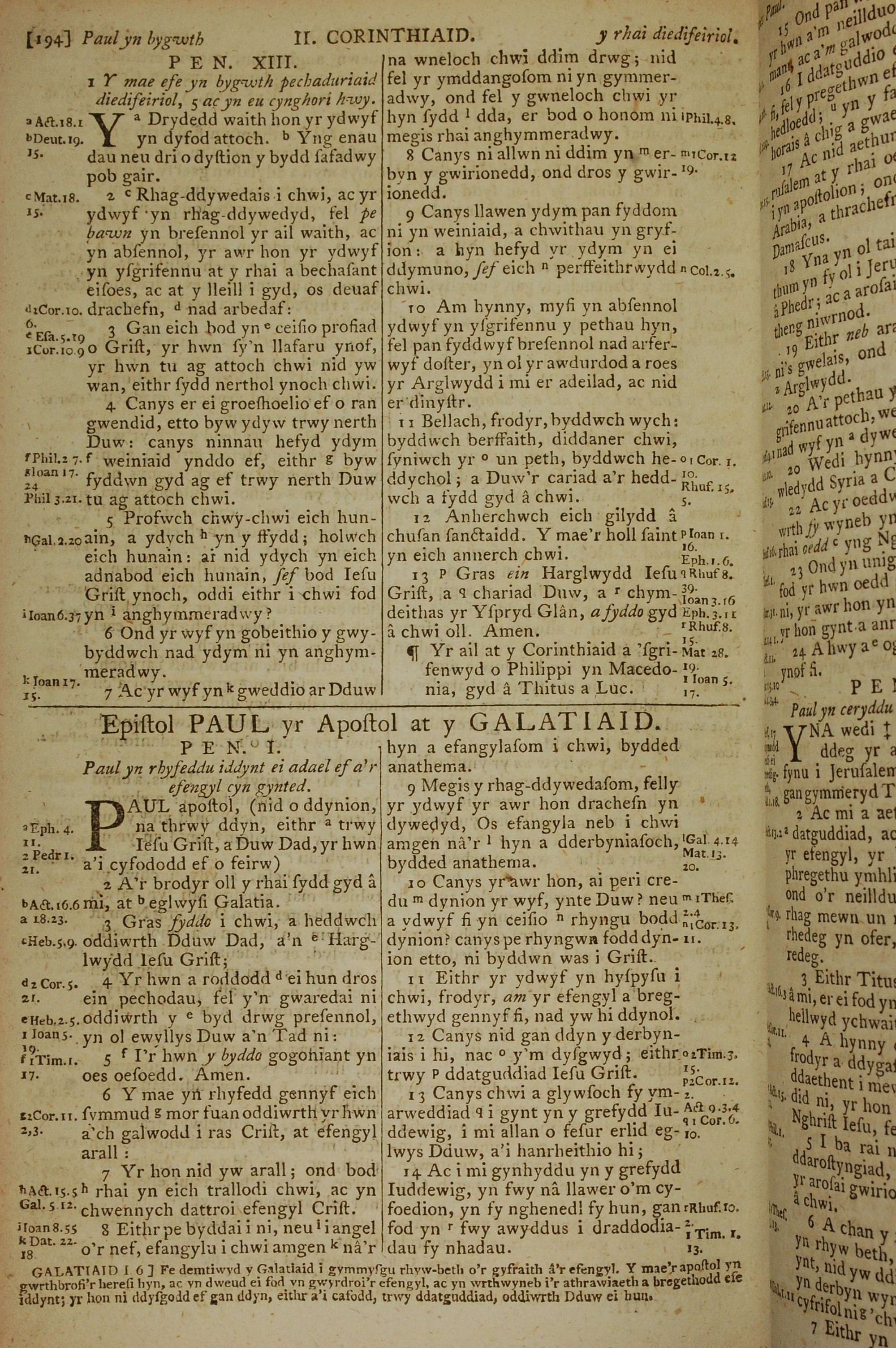 1796年威爾斯文新舊約全書 哥林多後書 13 章 1 節到 13 章 13 節