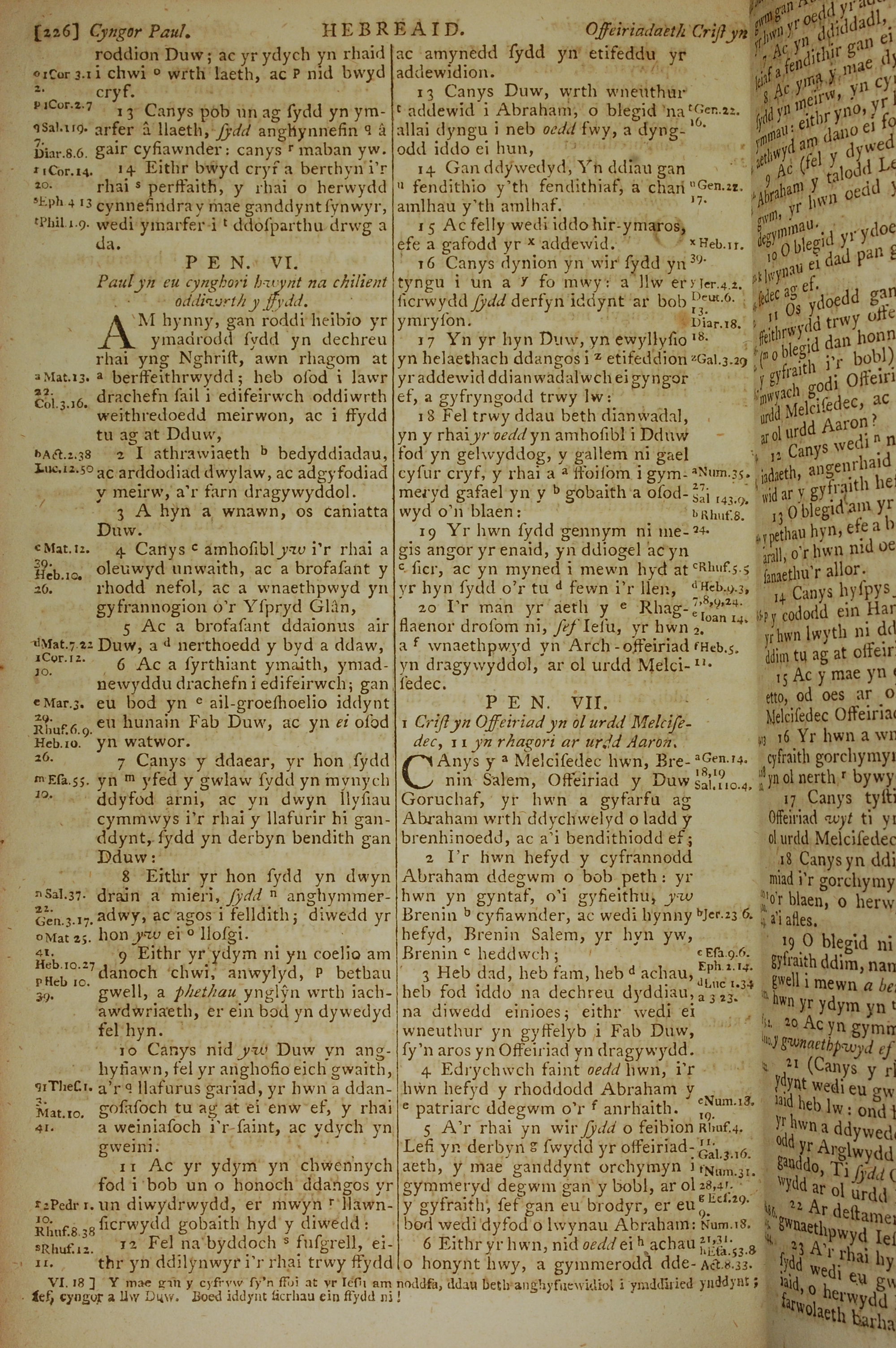 1796年威爾斯文新舊約全書 希伯來書 5 章 13 節到 7 章 6 節