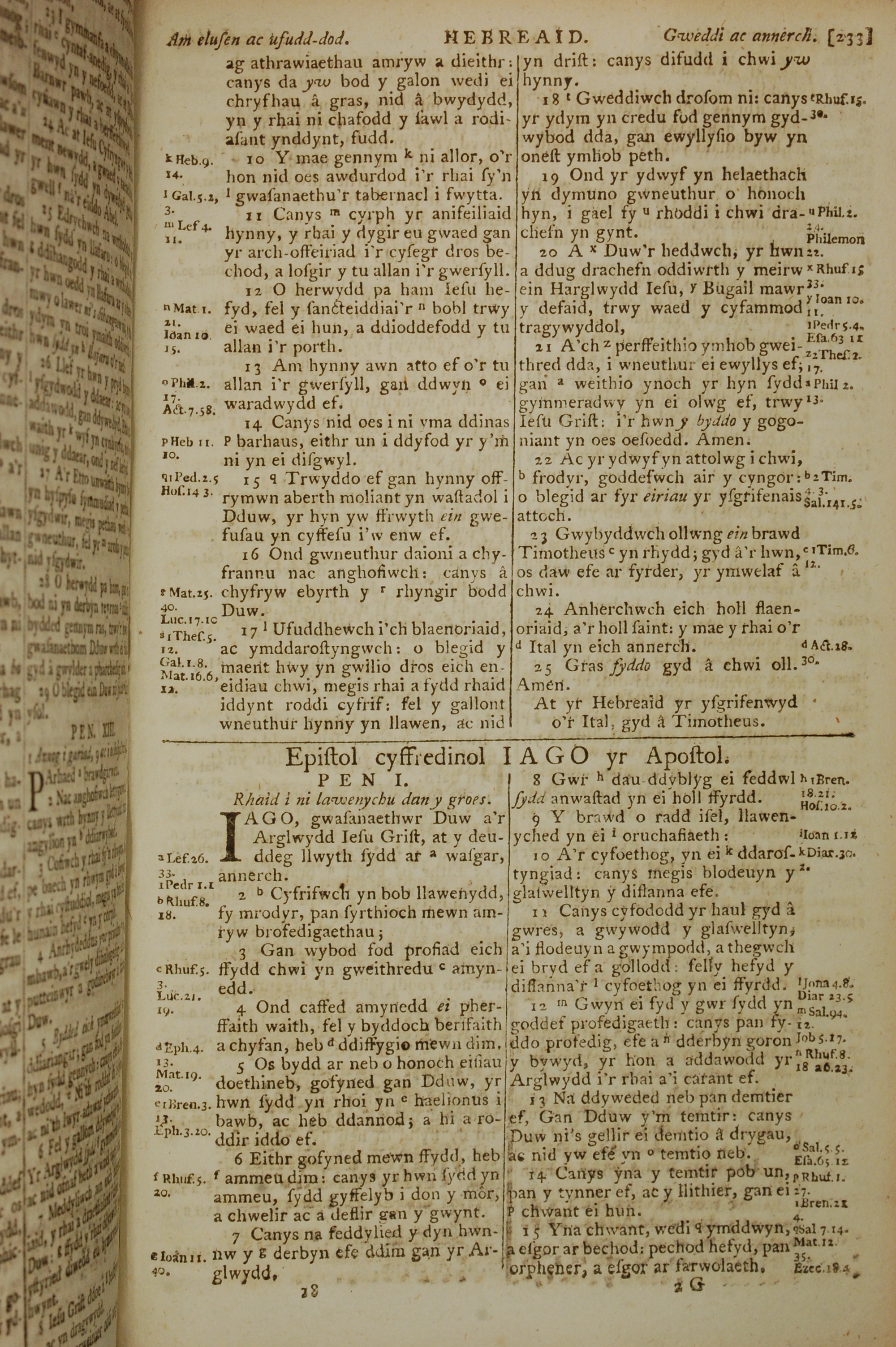 1796年威爾斯文新舊約全書 希伯來書 13 章 10 節到 13 章 25 節
