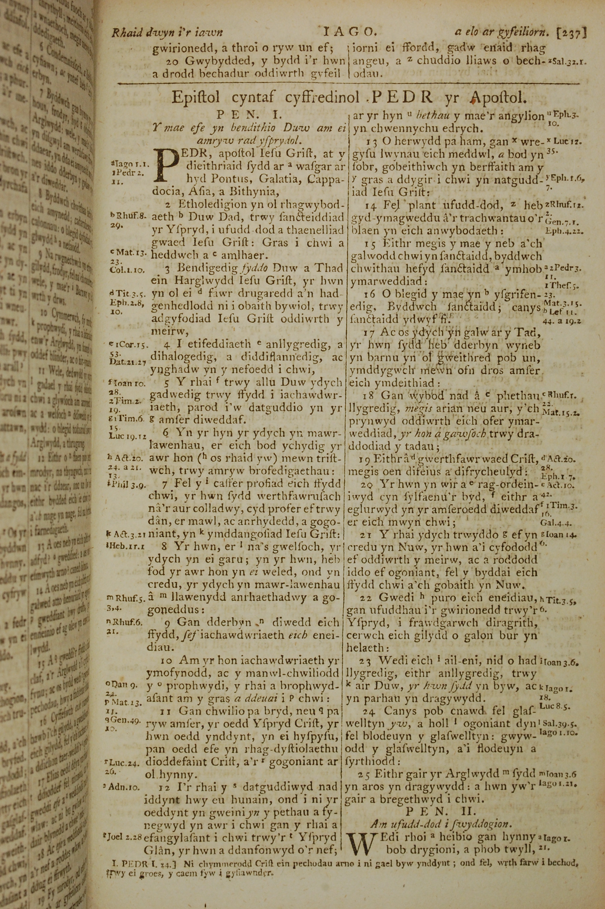 1796年威爾斯文新舊約全書 彼得前書 1 章 1 節到 2 章 1 節