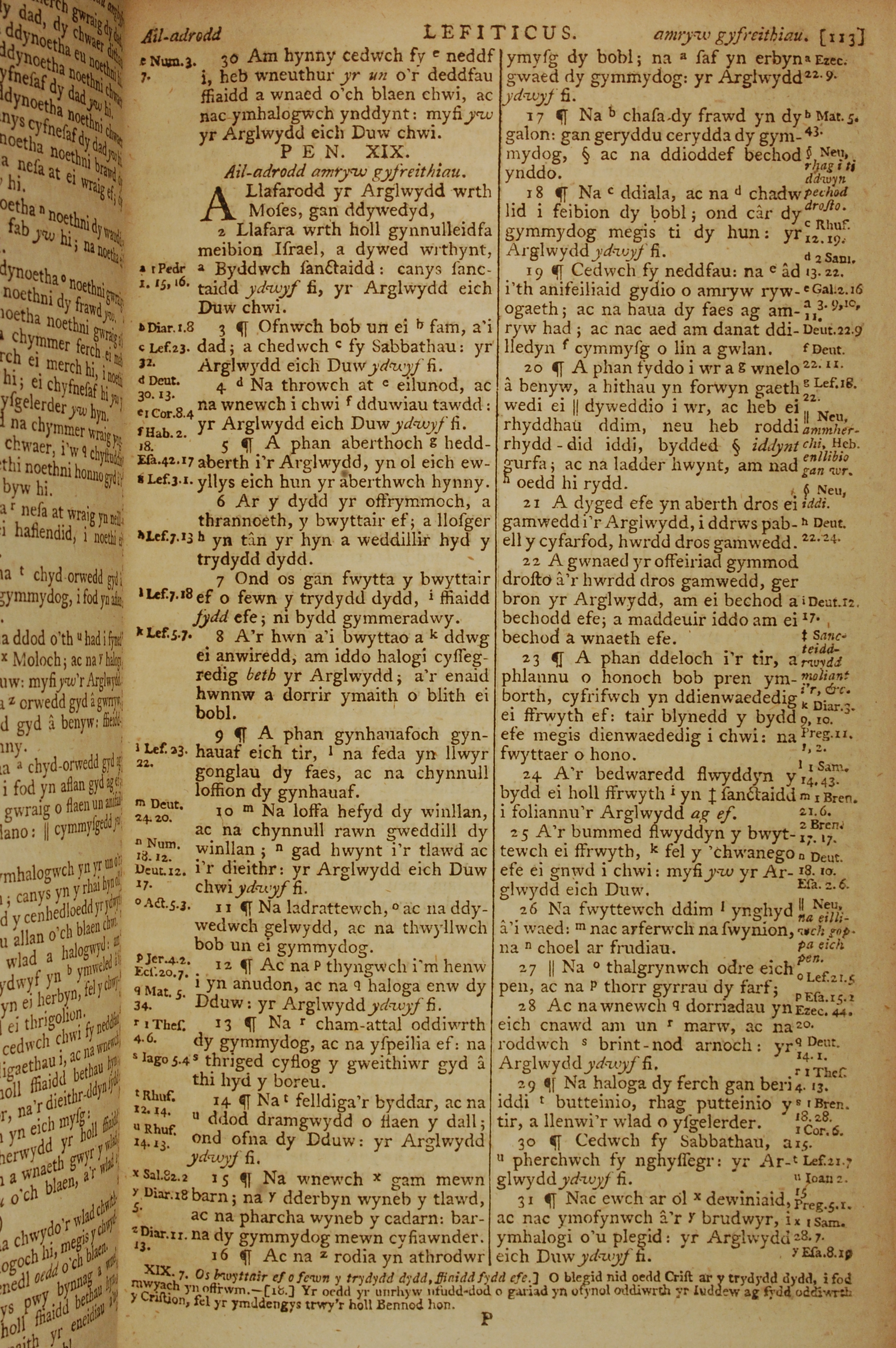 1796年威爾斯文新舊約全書 利未記 18 章 30 節到 19 章 31 節