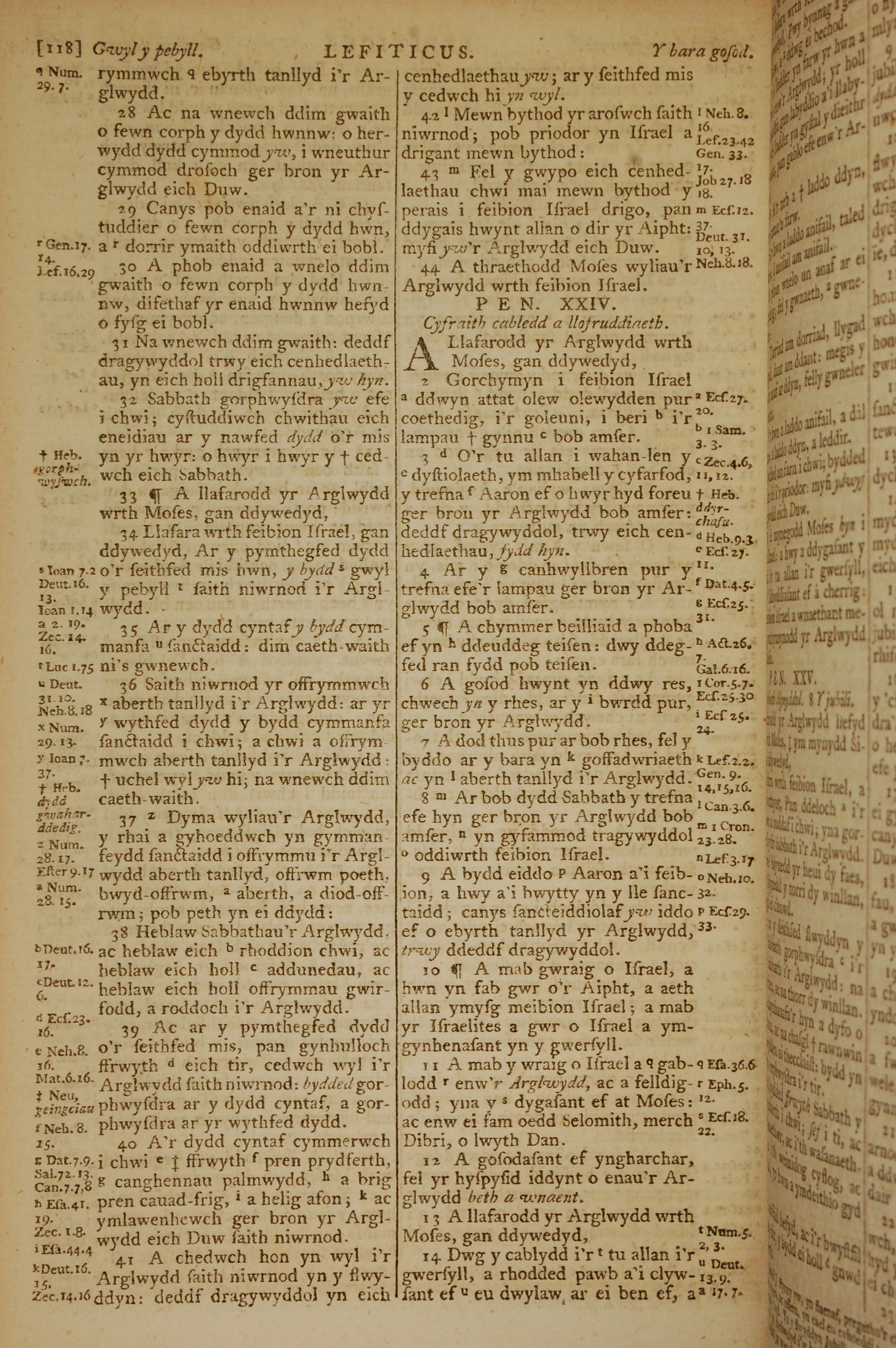 1796年威爾斯文新舊約全書 利未記 23 章 28 節到 24 章 14 節