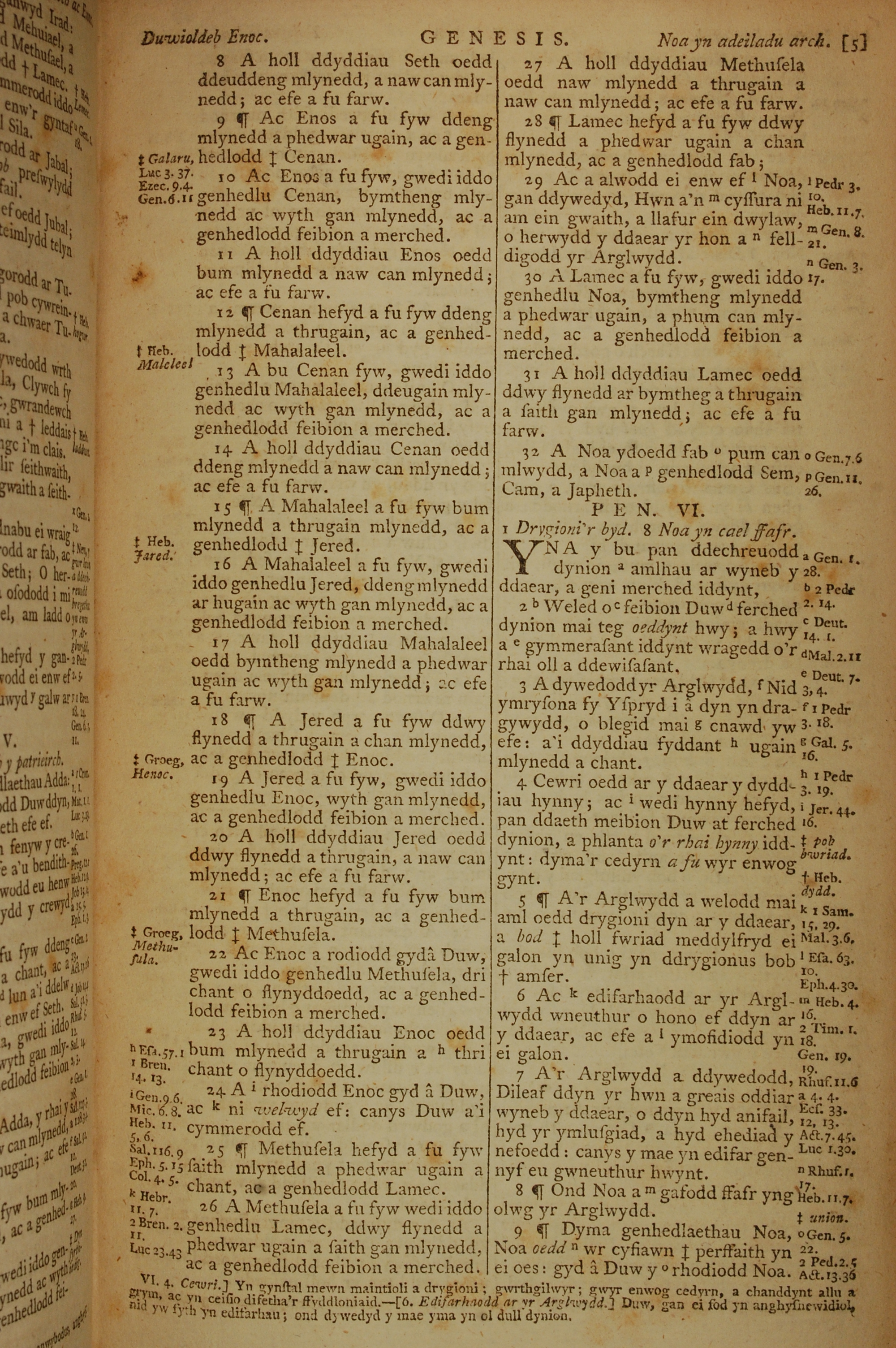 1796年威爾斯文新舊約全書 創世記 5 章 8 節到 6 章 9 節