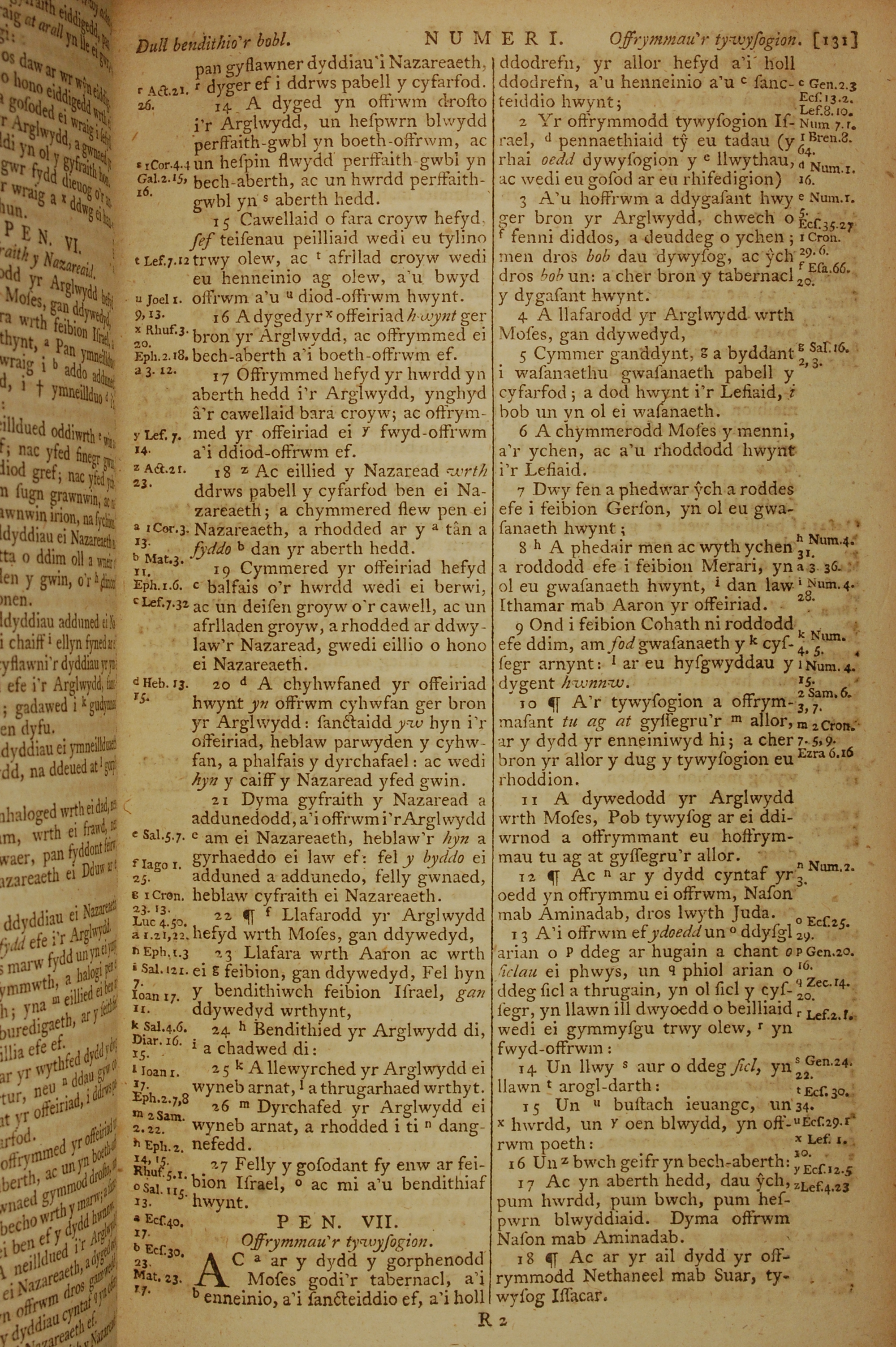 1796年威爾斯文新舊約全書 民數記 6 章 14 節到 7 章 18 節