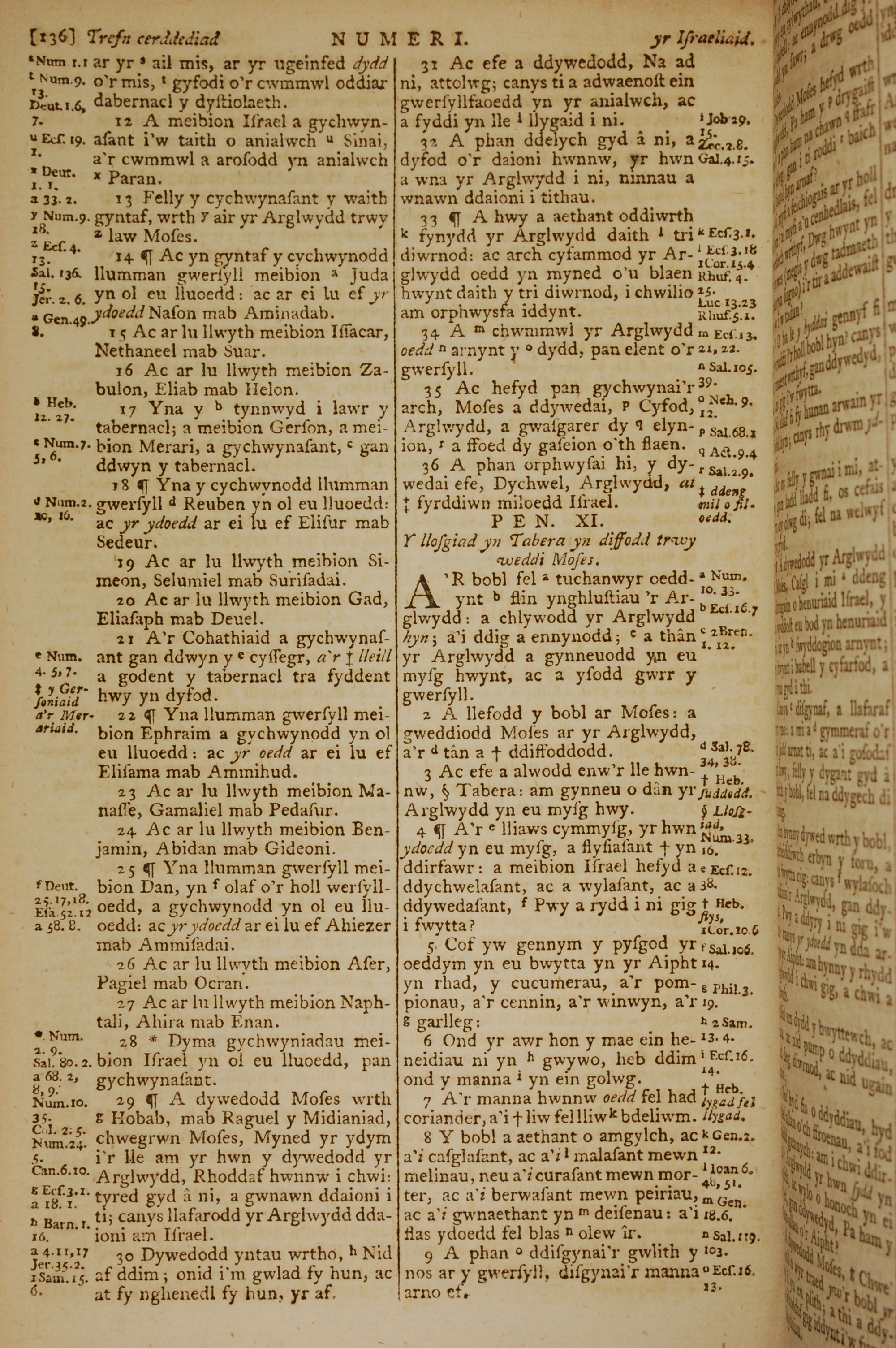 1796年威爾斯文新舊約全書 民數記 10 章 12 節到 11 章 9 節