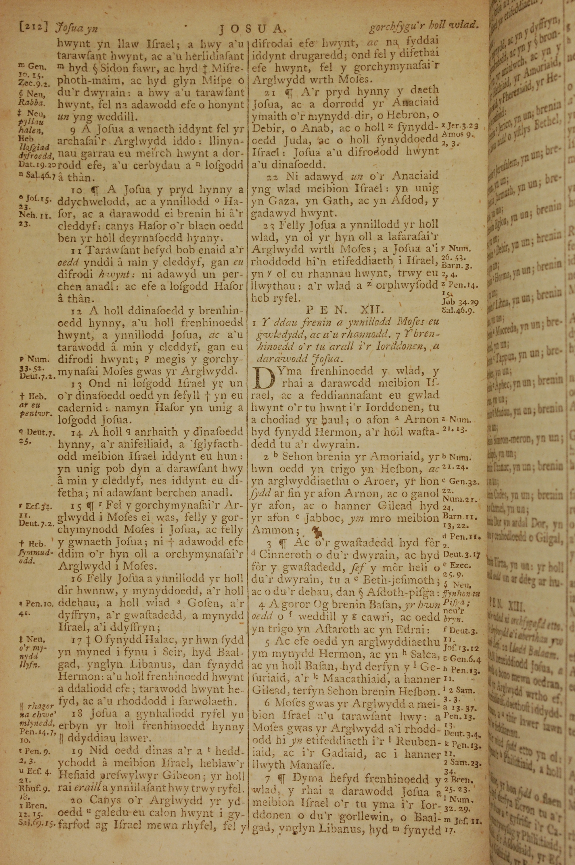 1796年威爾斯文新舊約全書 約書亞記 11 章 9 節到 12 章 7 節
