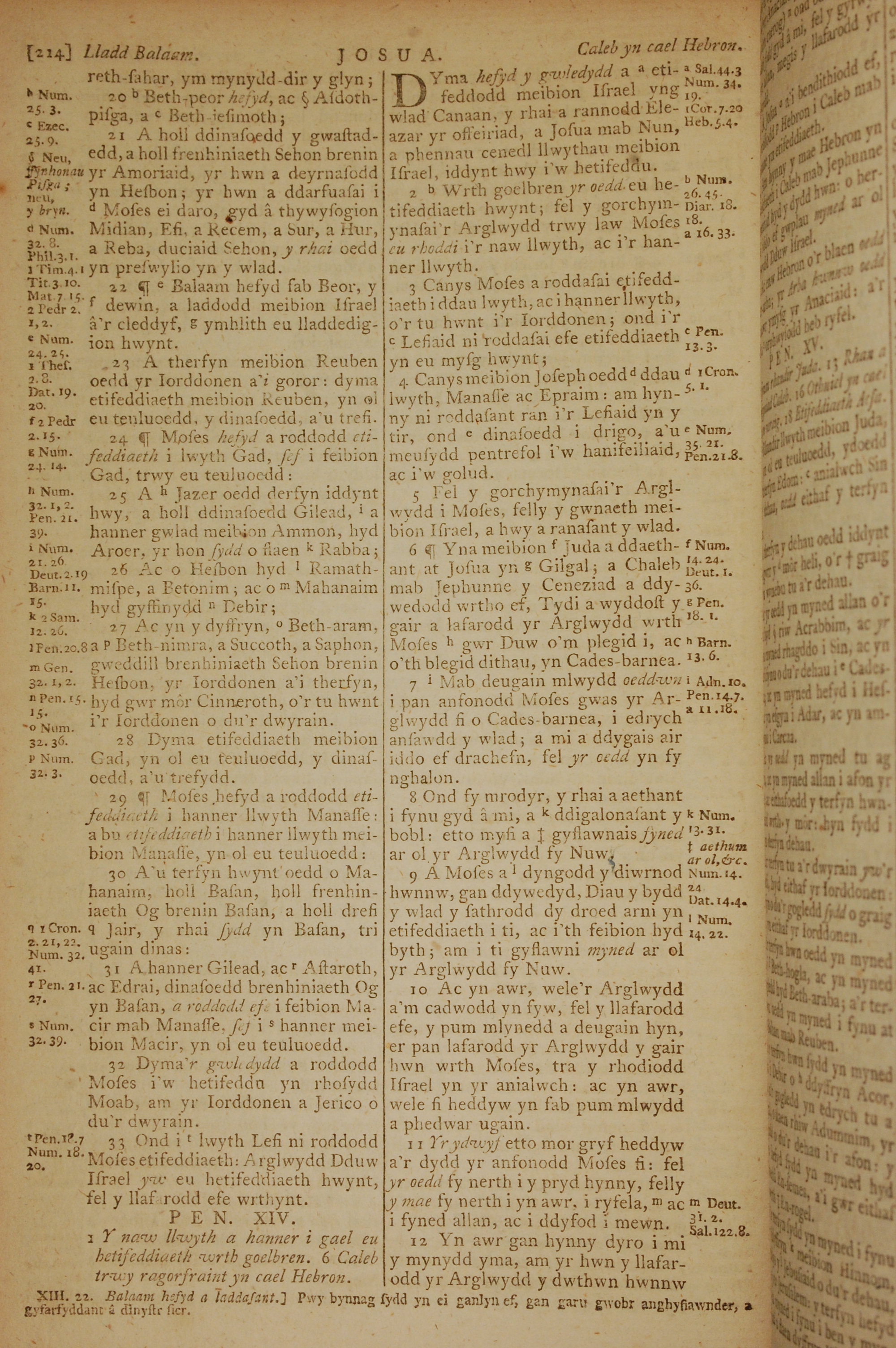 1796年威爾斯文新舊約全書 約書亞記 13 章 20 節到 14 章 12 節