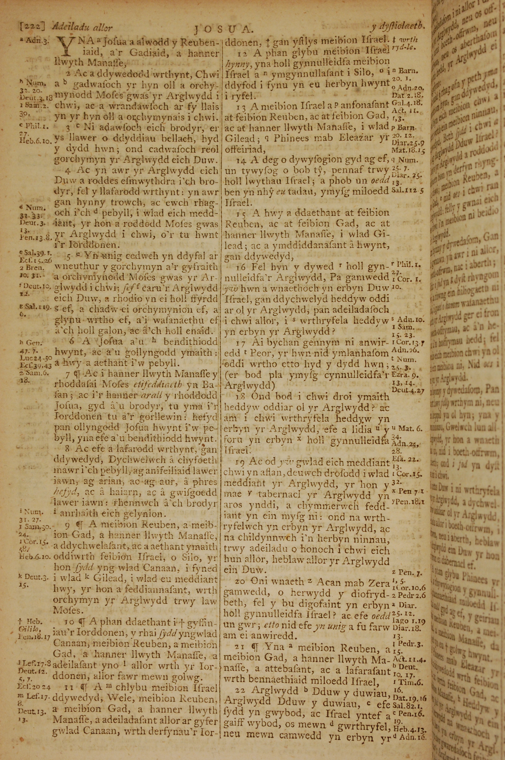 1796年威爾斯文新舊約全書 約書亞記 22 章 1 節到 22 章 22 節