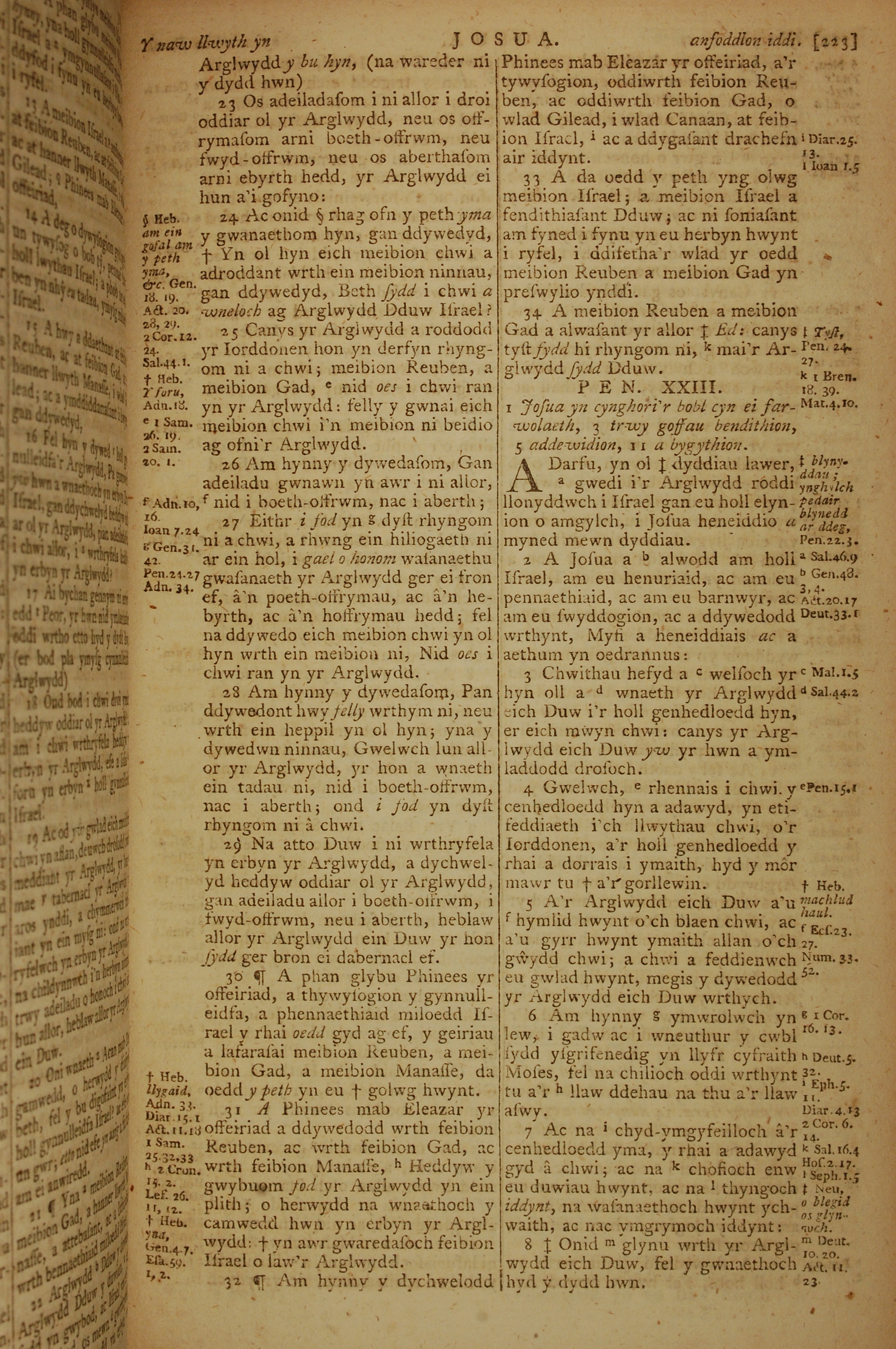 1796年威爾斯文新舊約全書 約書亞記 22 章 23 節到 23 章 8 節