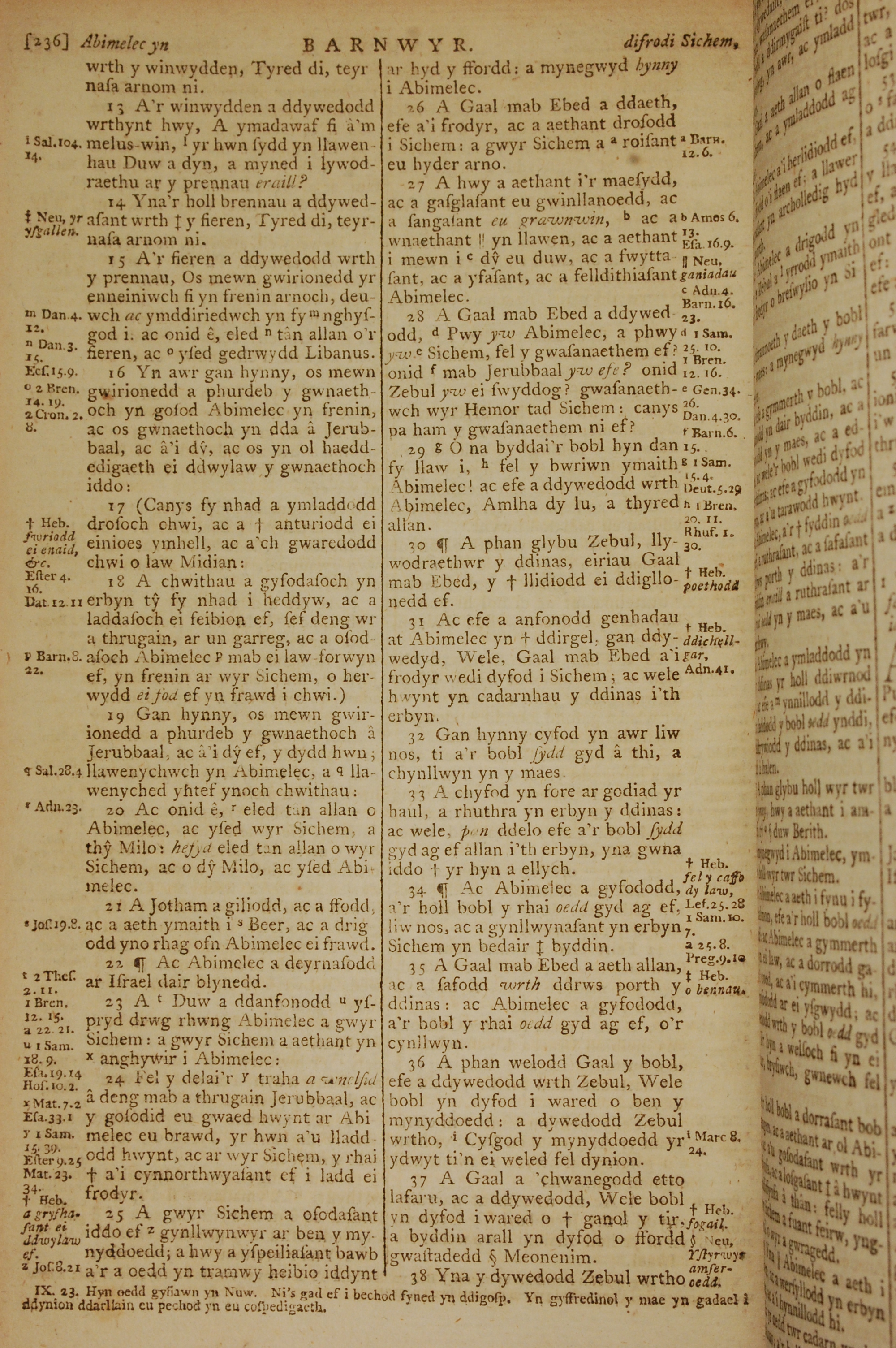 1796年威爾斯文新舊約全書 士師記 9 章 13 節到 9 章 38 節