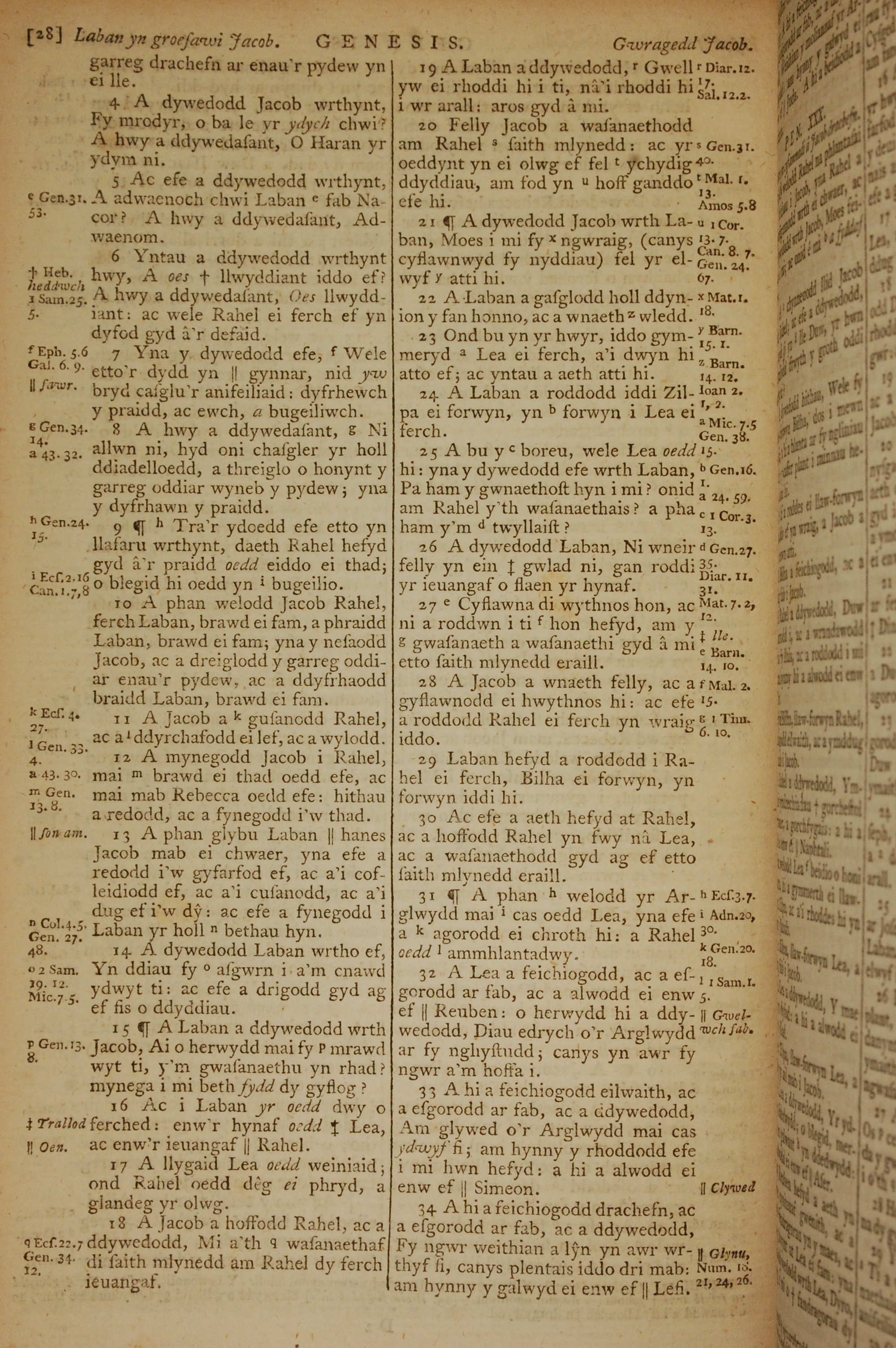 1796年威爾斯文新舊約全書 創世記 29 章 4 節到 29 章 34 節
