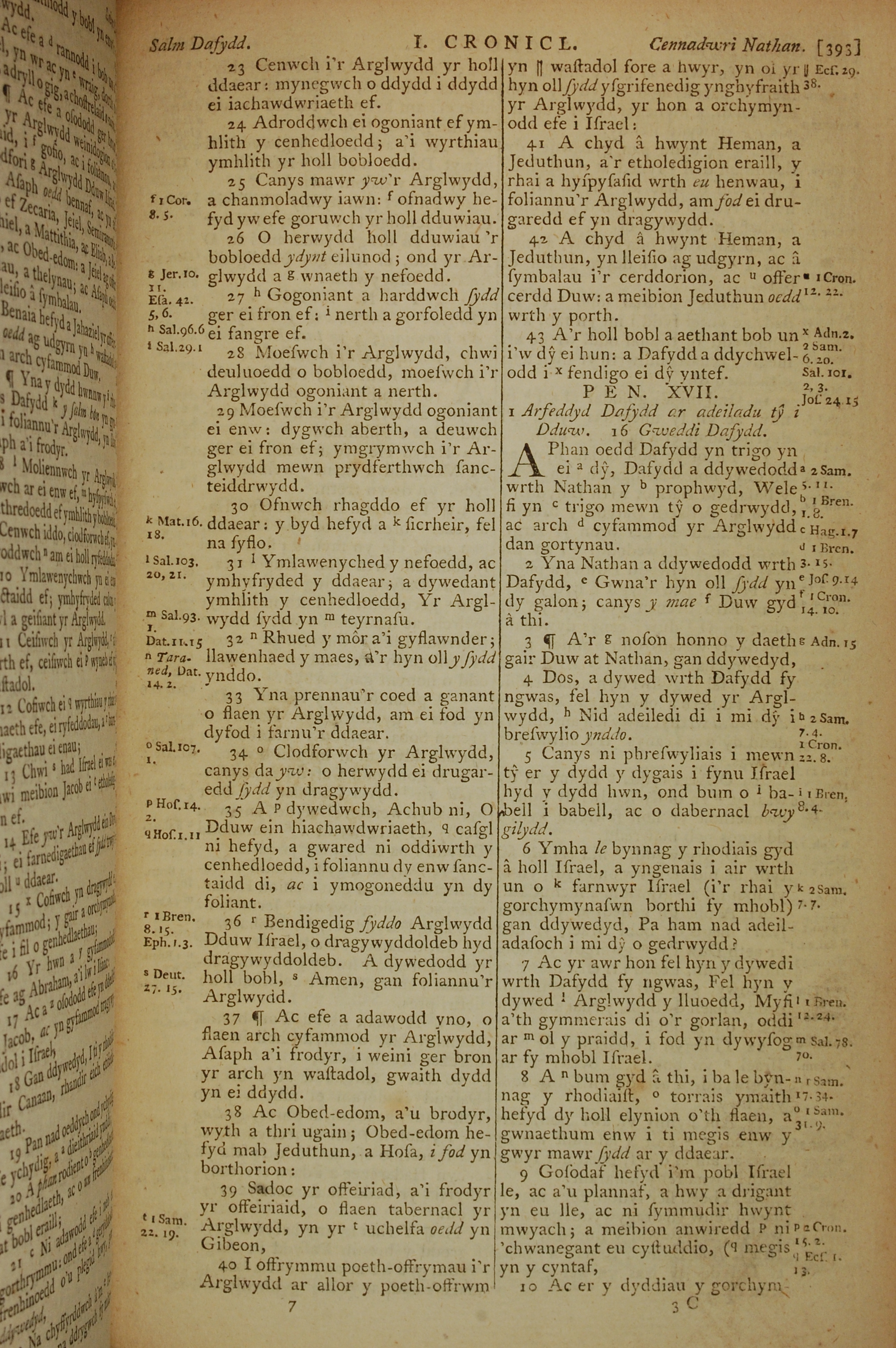 1796年威爾斯文新舊約全書 歷代志上 16 章 23 節到 17 章 10 節