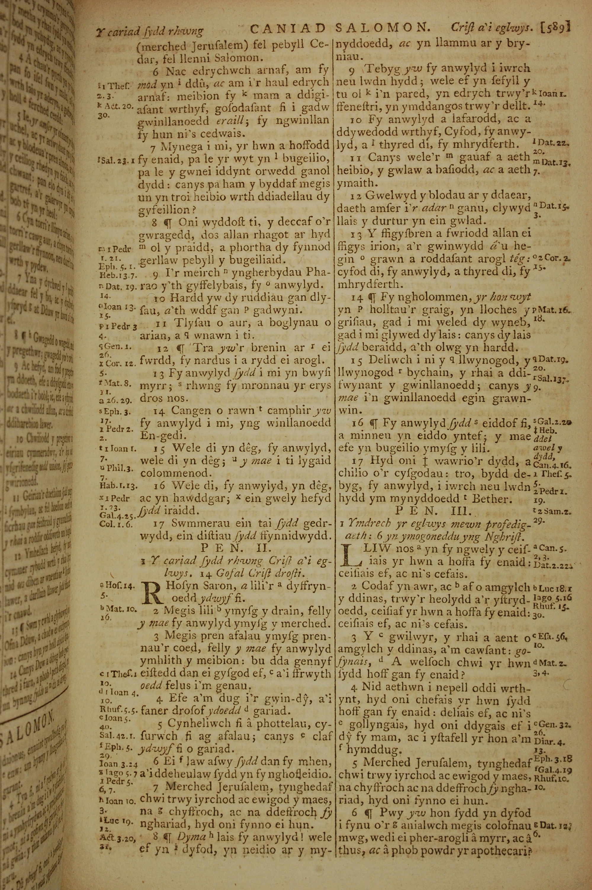 1796年威爾斯文新舊約全書 雅歌 1 章 6 節到 3 章 6 節