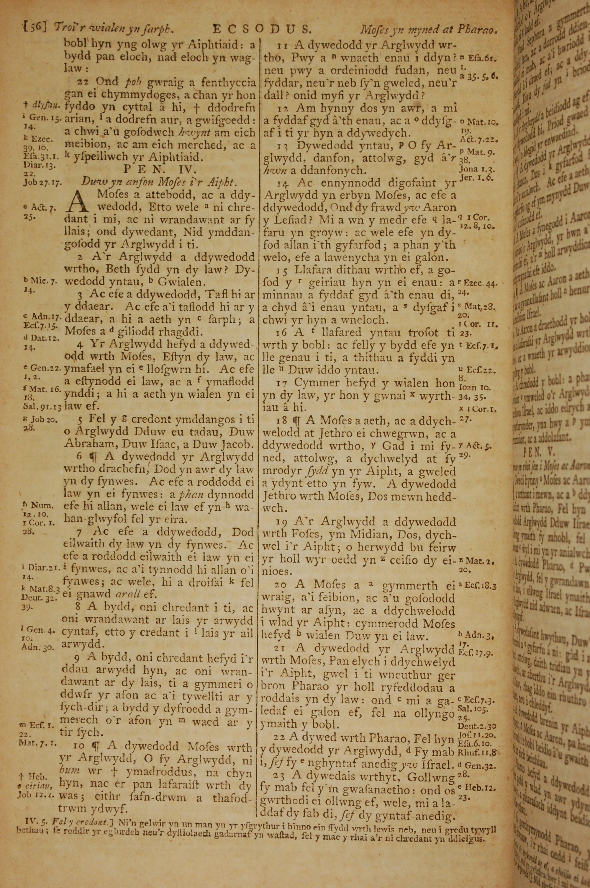 1796年威爾斯文新舊約全書 出埃及記 3 章 22 節到 4 章 23 節