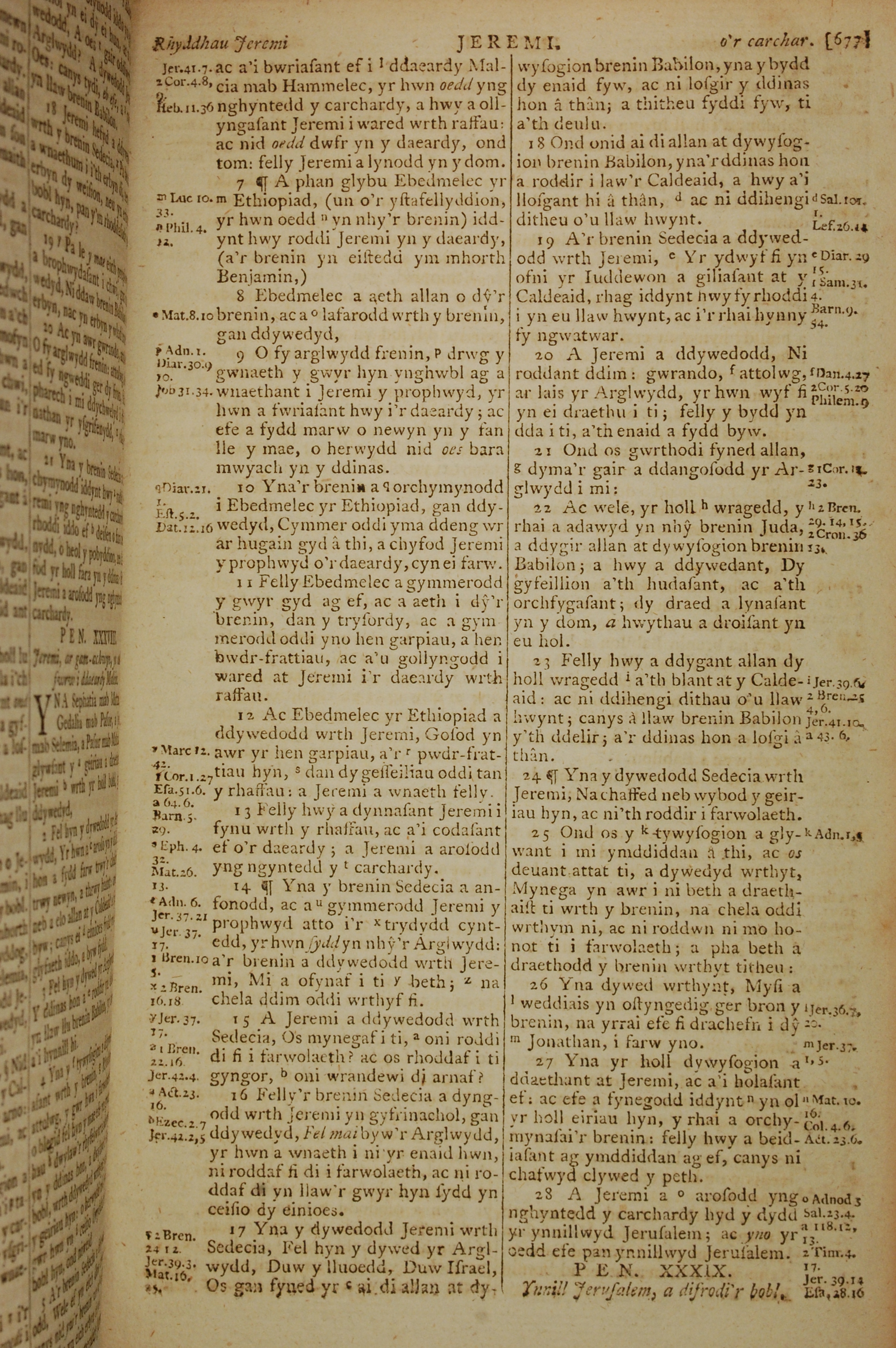 1796年威爾斯文新舊約全書 耶利米書 38 章 7 節到 38 章 28 節