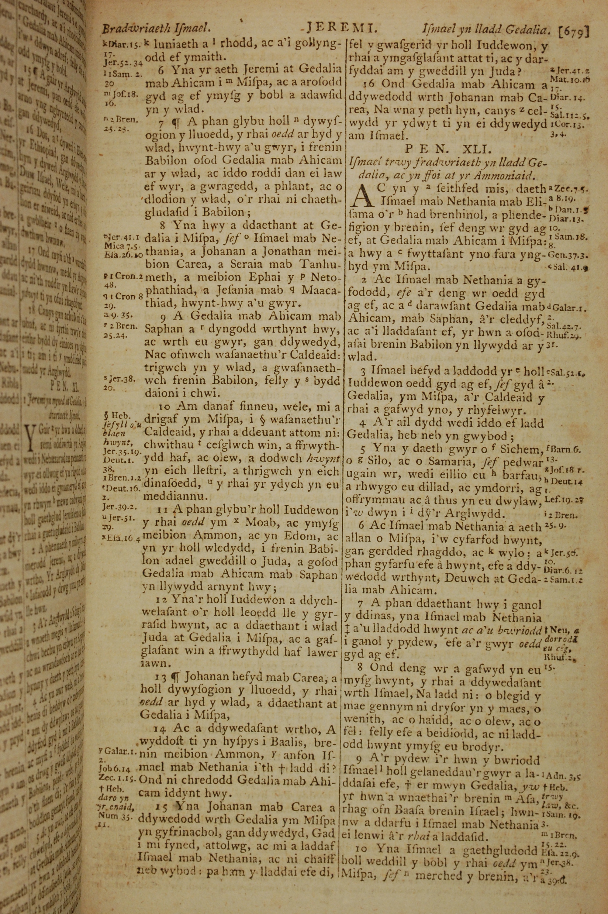 1796年威爾斯文新舊約全書 耶利米書 40 章 6 節到 41 章 10 節