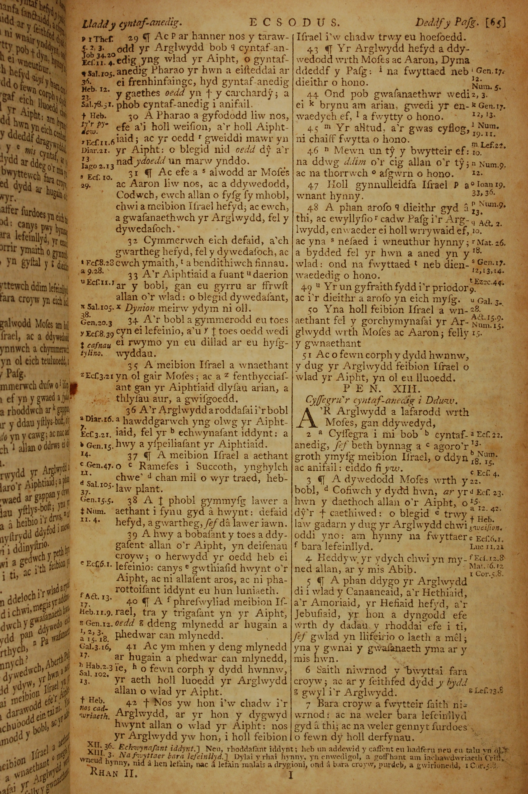 1796年威爾斯文新舊約全書 出埃及記 12 章 29 節到 13 章 7 節
