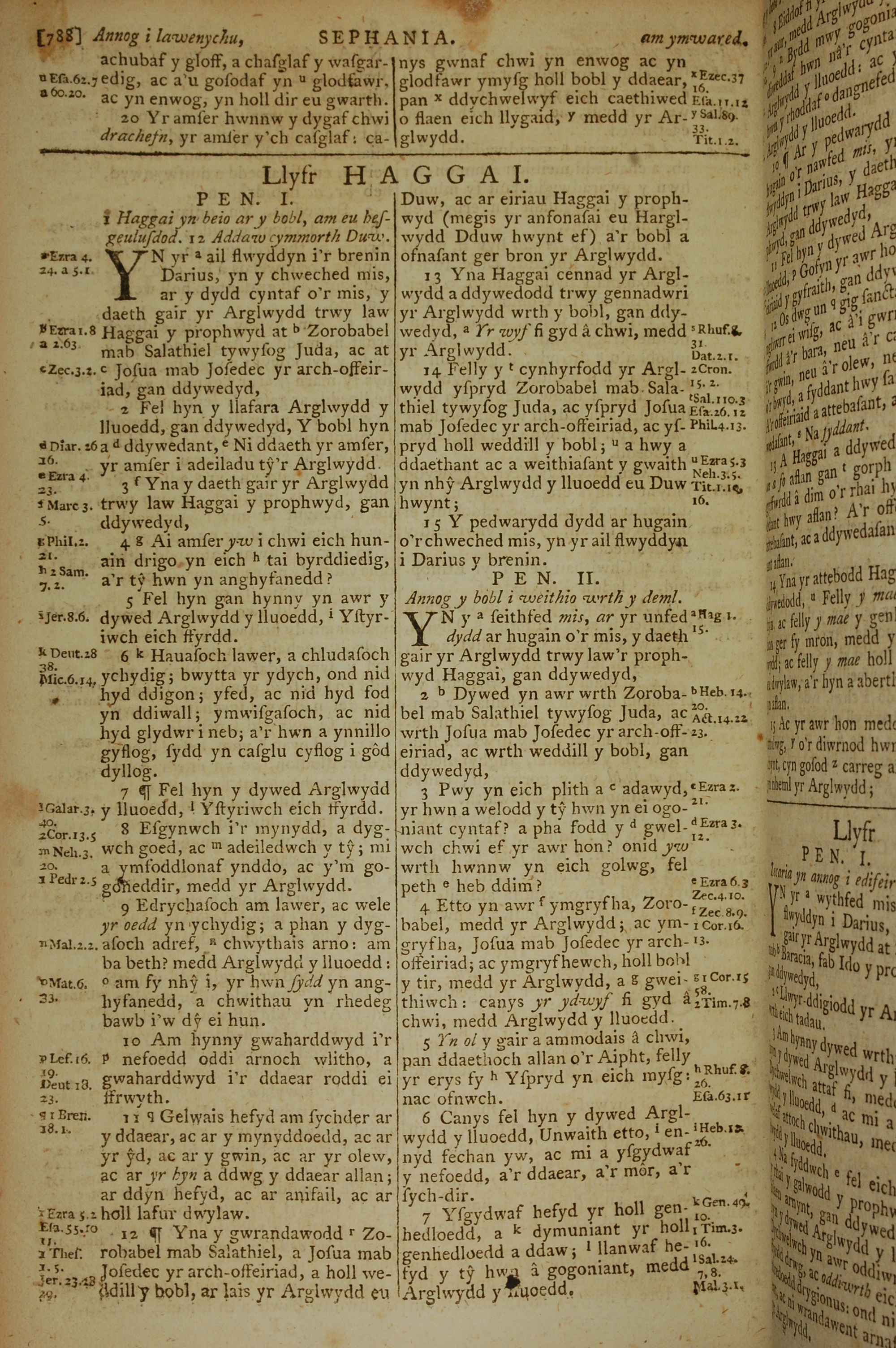 1796年威爾斯文新舊約全書 哈該書 1 章 1 節到 2 章 7 節
