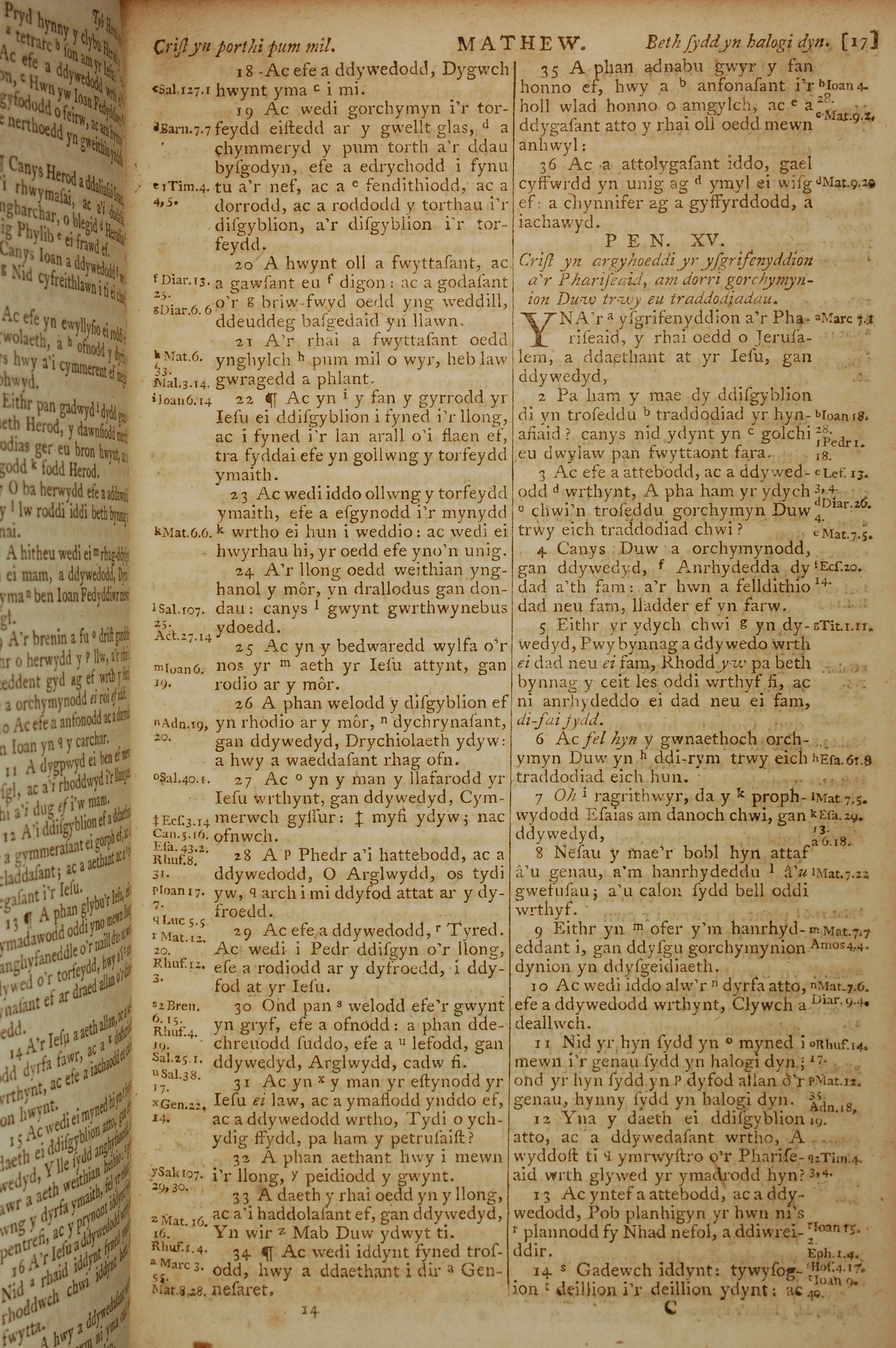 1796年威爾斯文新舊約全書 馬太福音 14 章 18 節到 15 章 14 節