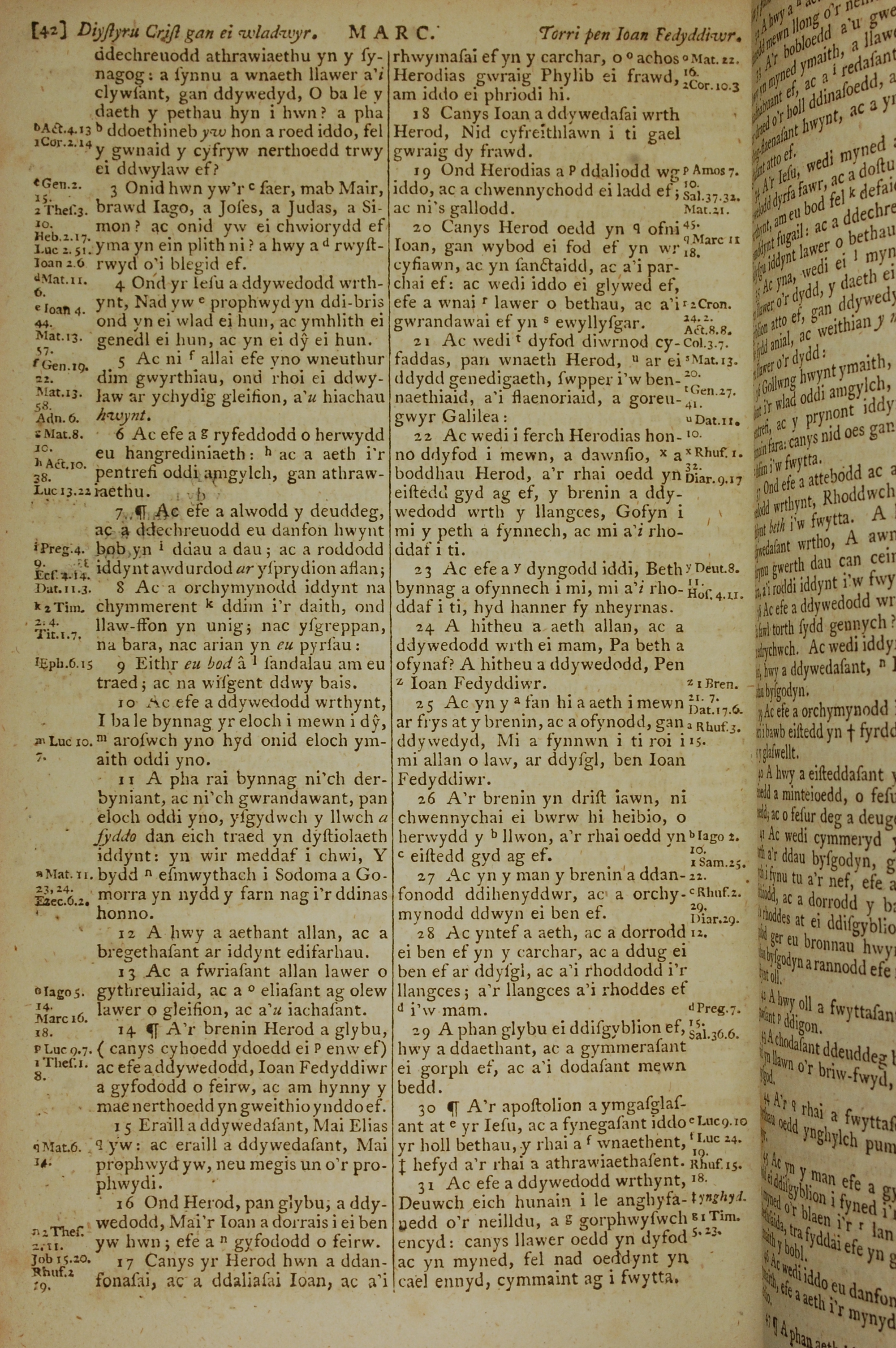 1796年威爾斯文新舊約全書 馬可福音 6 章 2 節到 6 章 31 節