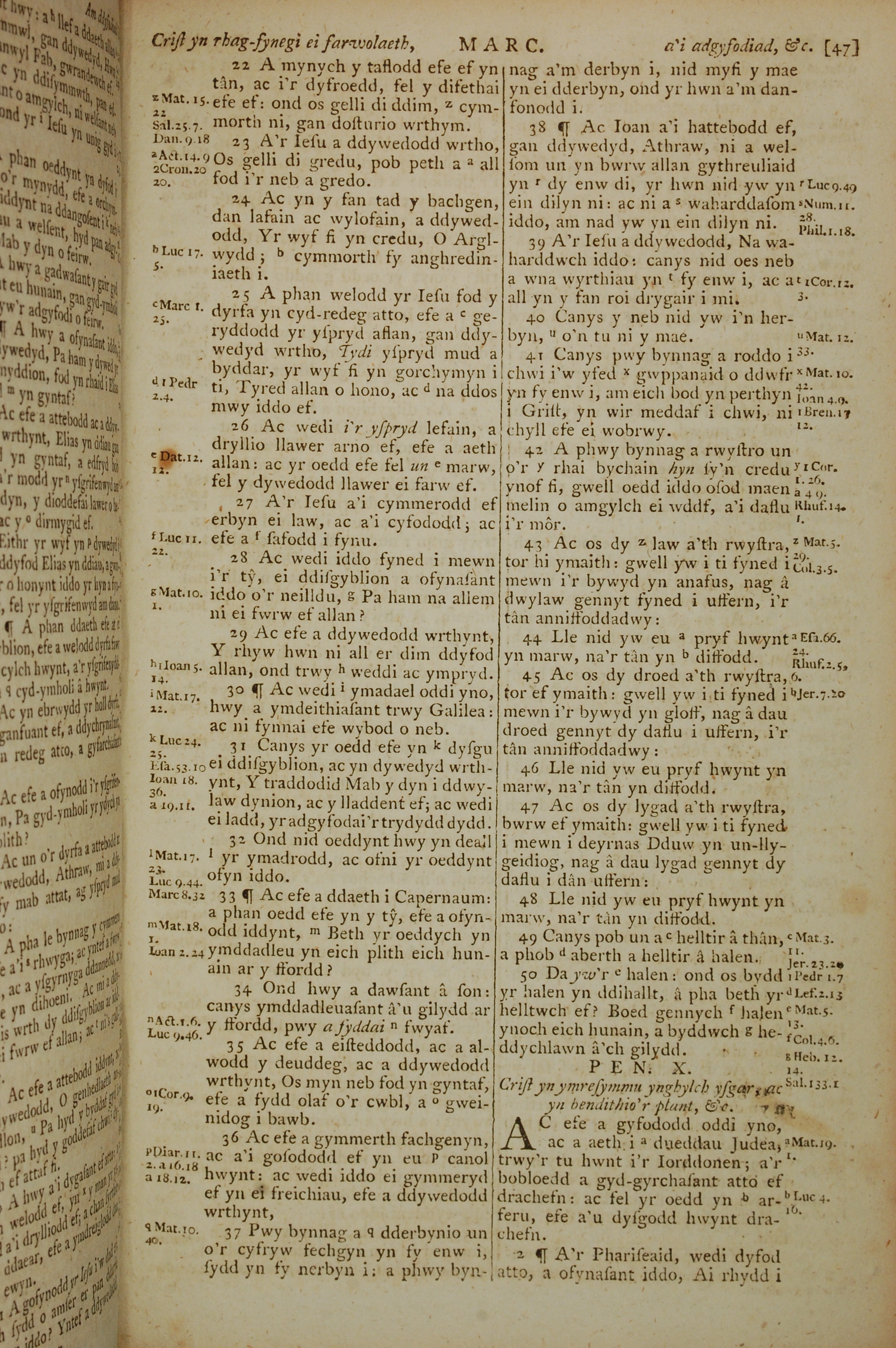 1796年威爾斯文新舊約全書 馬可福音 9 章 22 節到 10 章 2 節