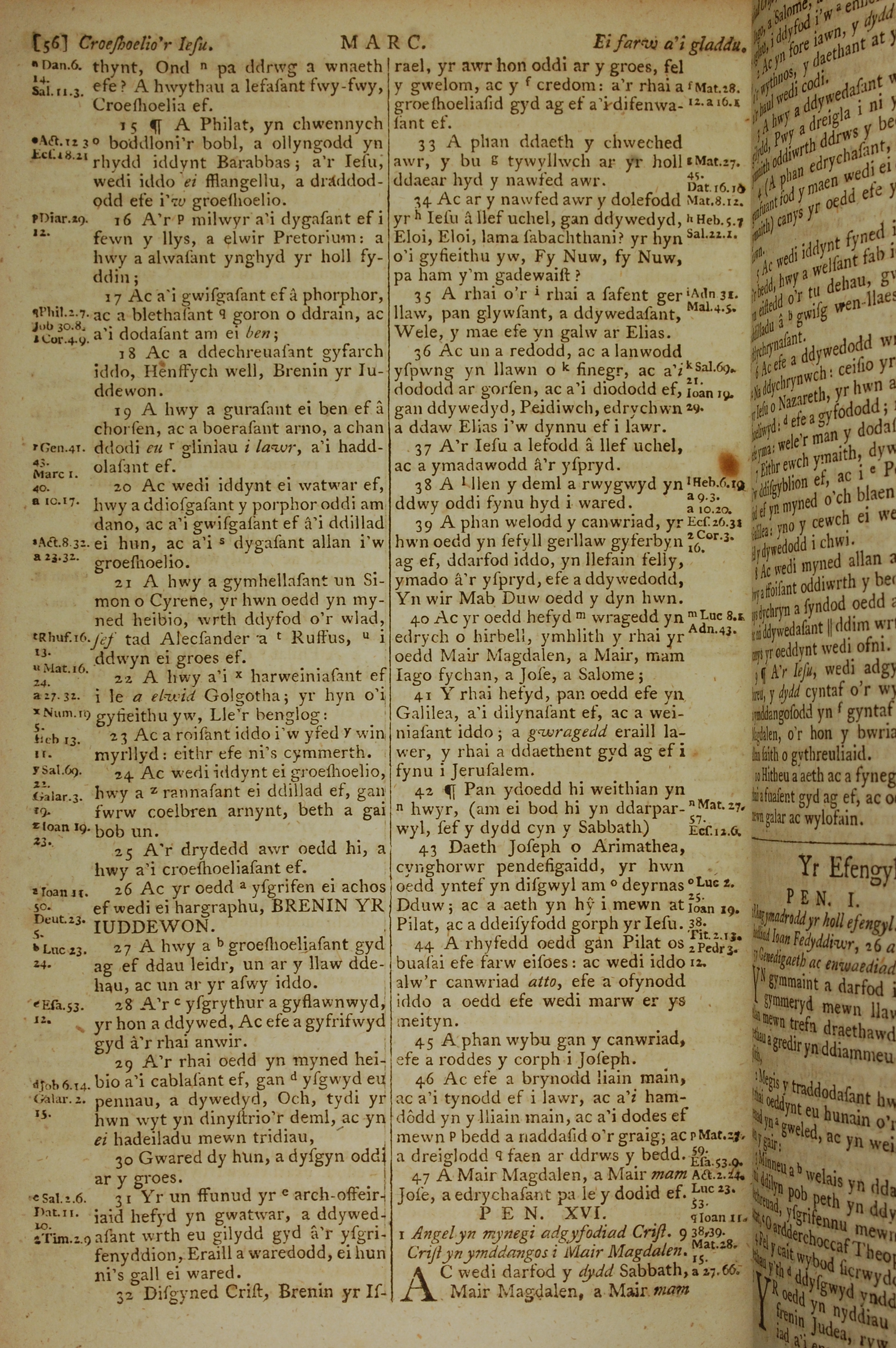 1796年威爾斯文新舊約全書 馬可福音 15 章 15 節到 16 章 1 節