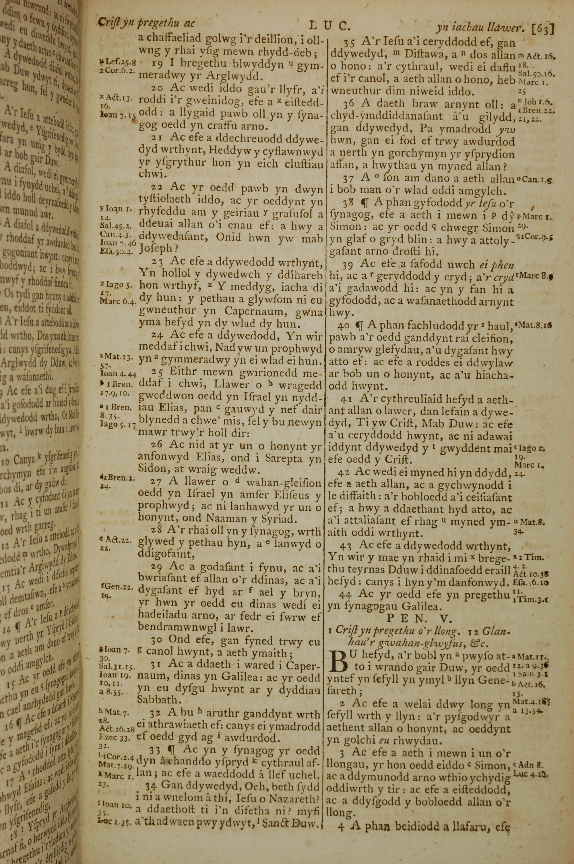 1796年威爾斯文新舊約全書 路加福音 4 章 19 節到 5 章 4 節