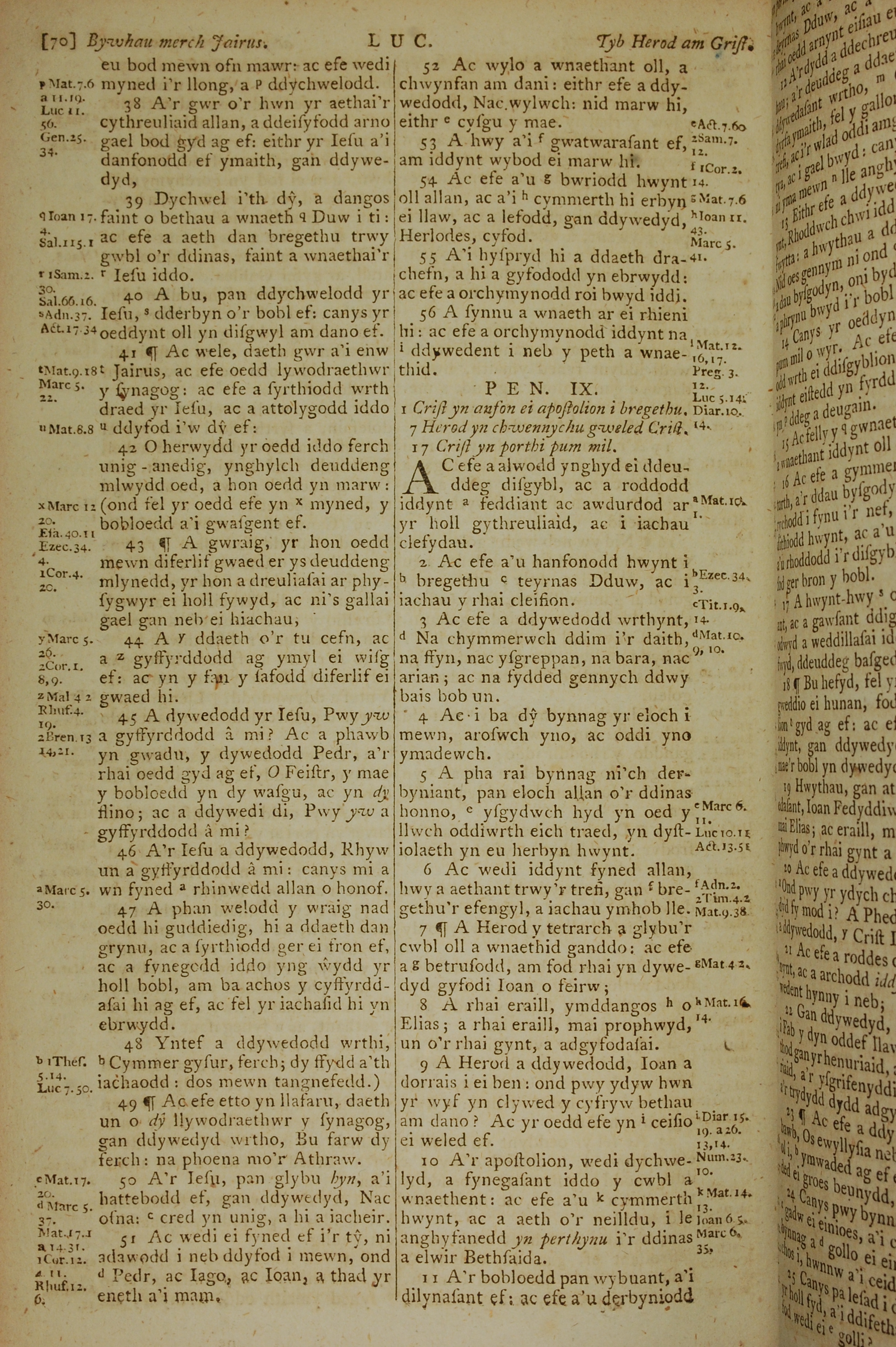 1796年威爾斯文新舊約全書 路加福音 8 章 38 節到 9 章 11 節