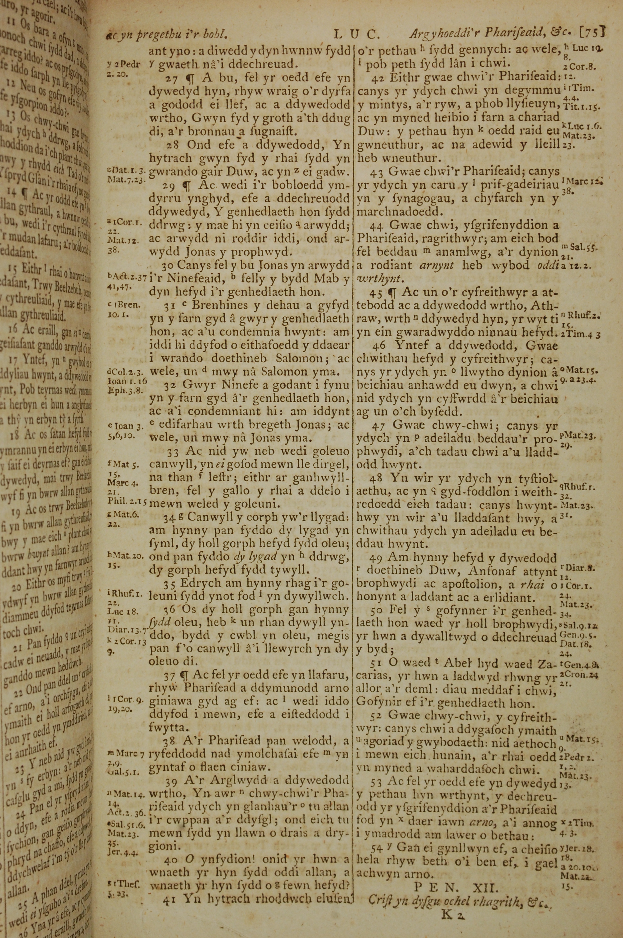 1796年威爾斯文新舊約全書 路加福音 11 章 27 節到 11 章 54 節