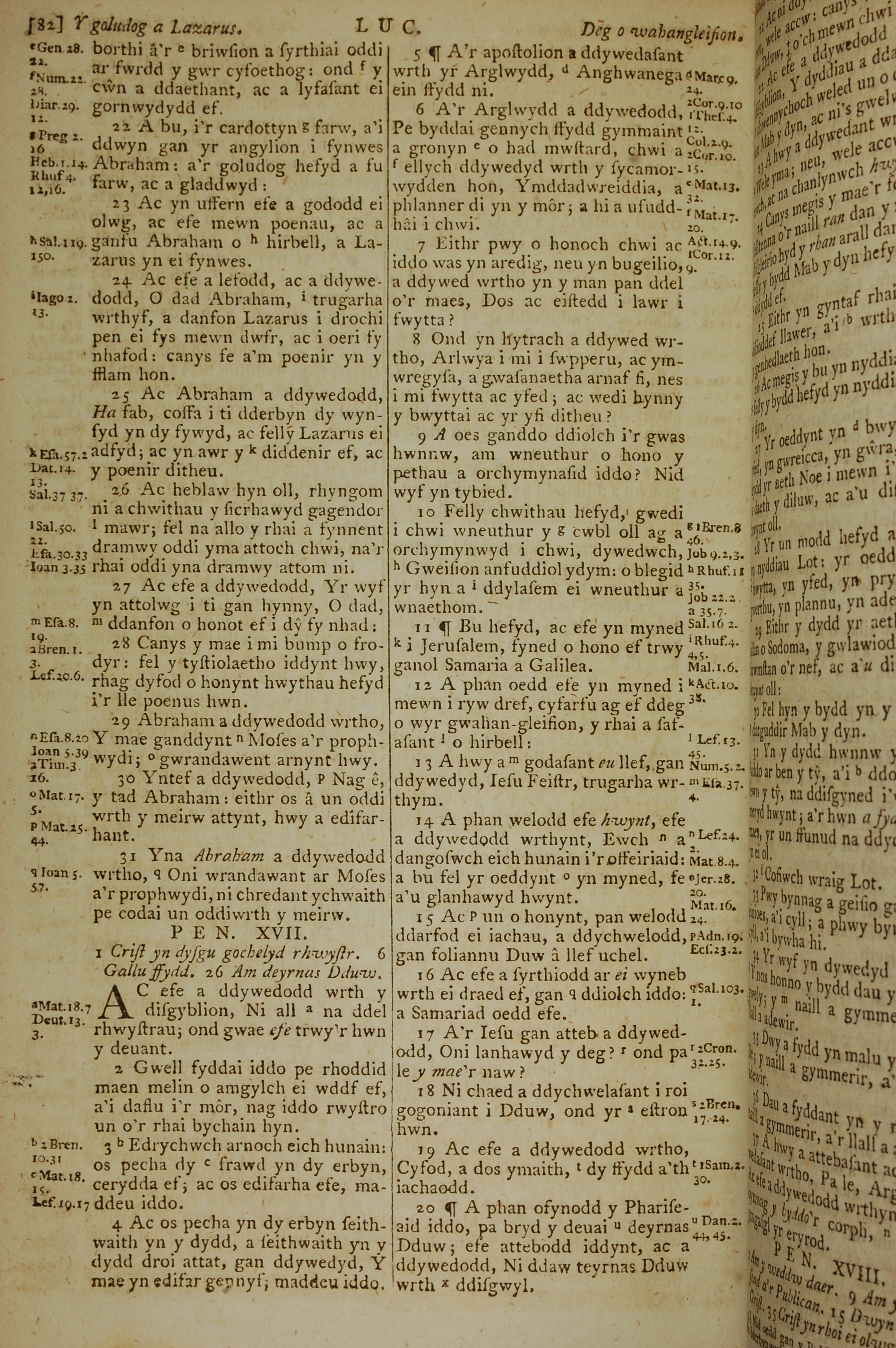 1796年威爾斯文新舊約全書 路加福音 16 章 22 節到 17 章 20 節