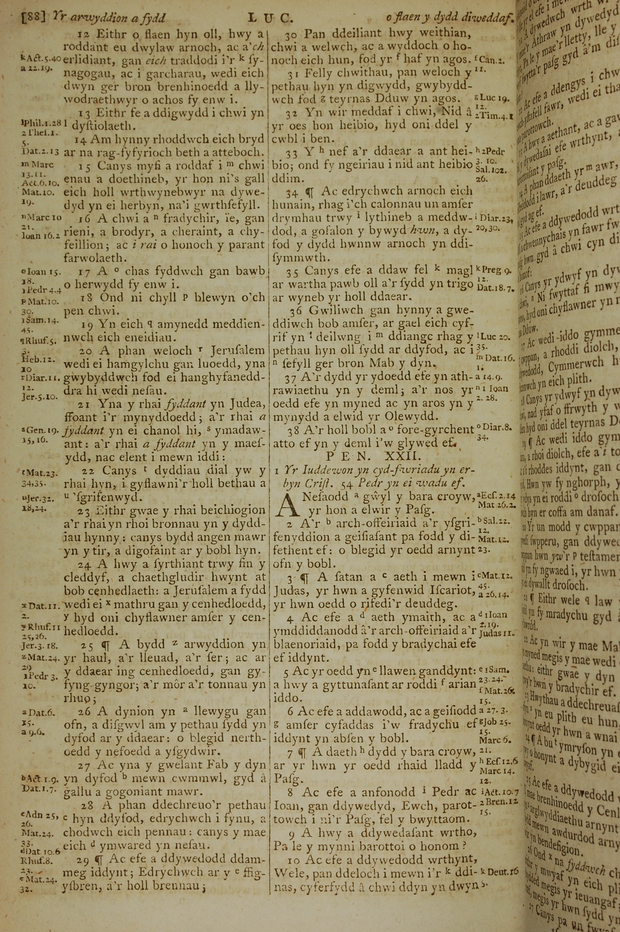1796年威爾斯文新舊約全書 路加福音 21 章 12 節到 22 章 10 節