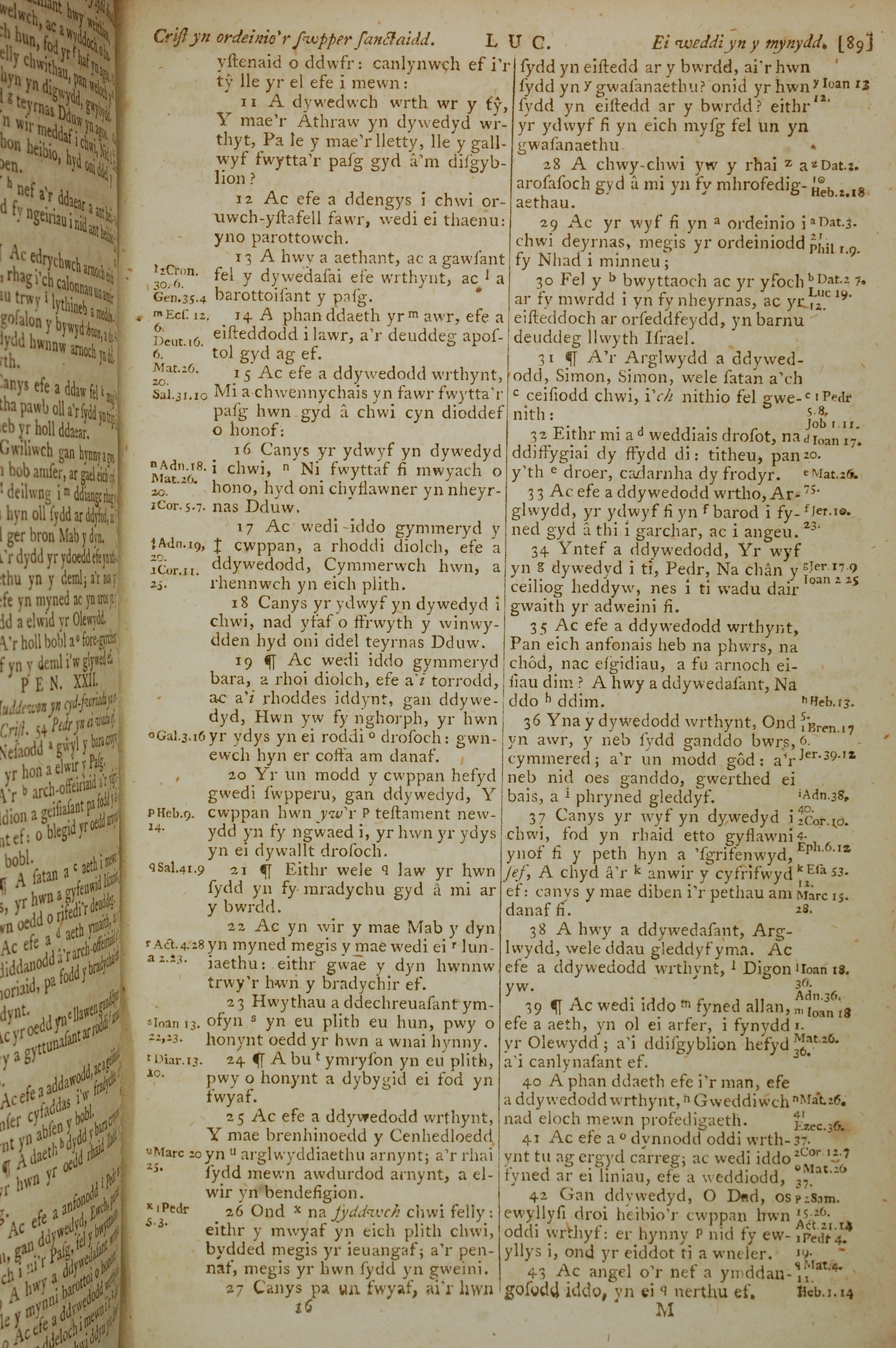 1796年威爾斯文新舊約全書 路加福音 22 章 11 節到 22 章 43 節