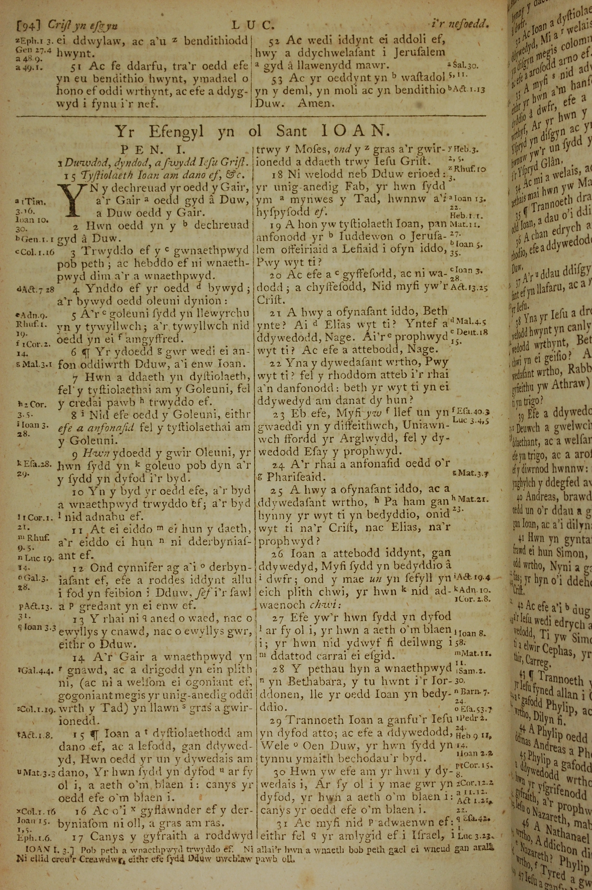 1796年威爾斯文新舊約全書 路加福音 24 章 51 節到 24 章 53 節