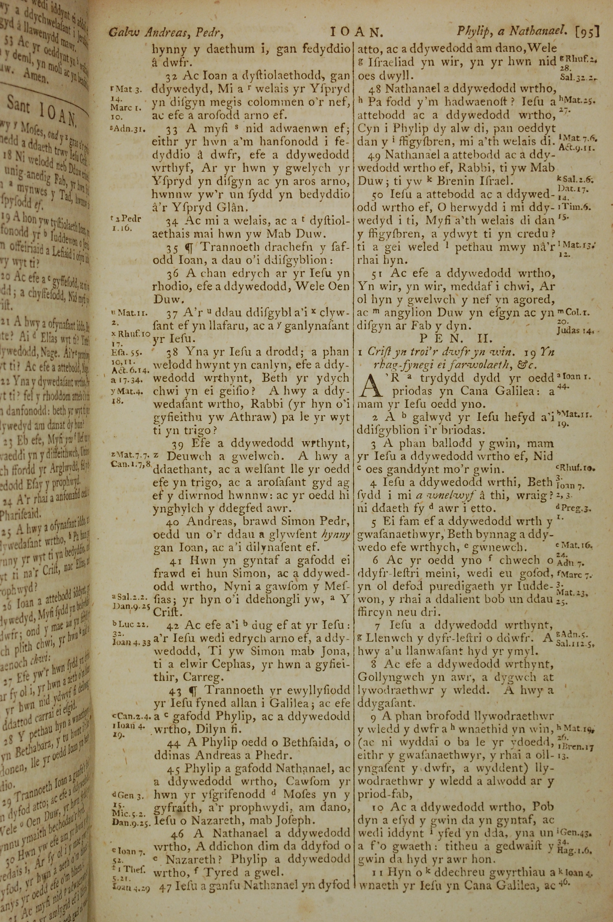1796年威爾斯文新舊約全書 約翰福音 1 章 32 節到 2 章 11 節