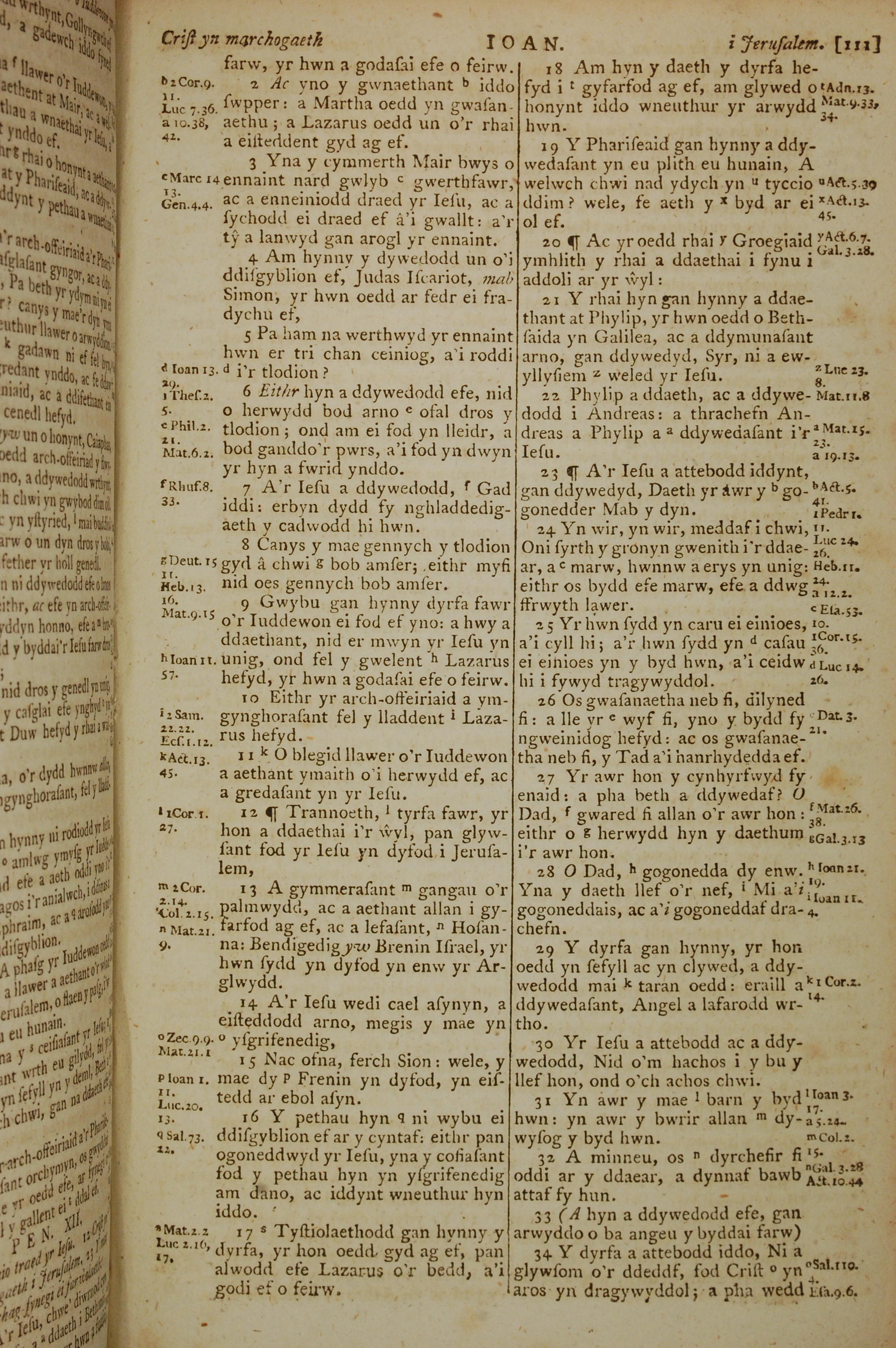 1796年威爾斯文新舊約全書 約翰福音 12 章 2 節到 12 章 34 節