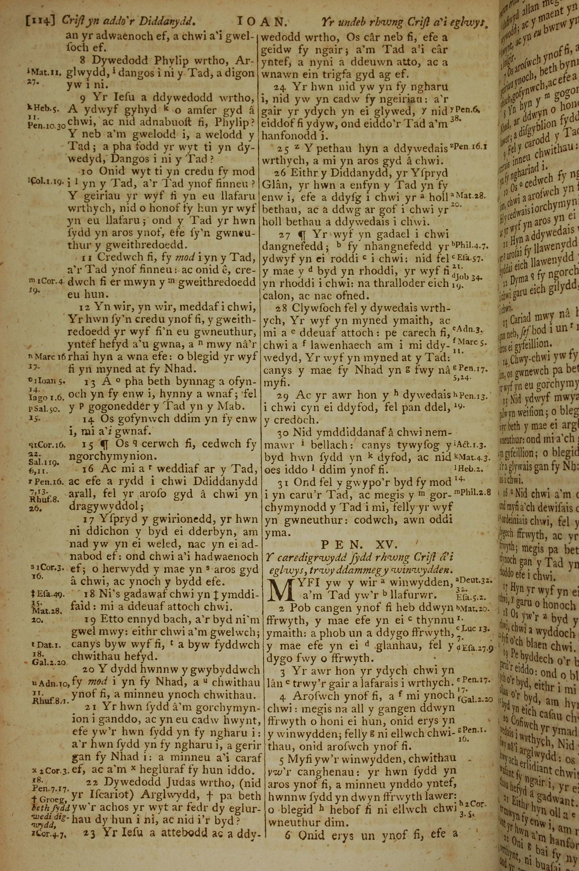 1796年威爾斯文新舊約全書 約翰福音 14 章 8 節到 15 章 6 節