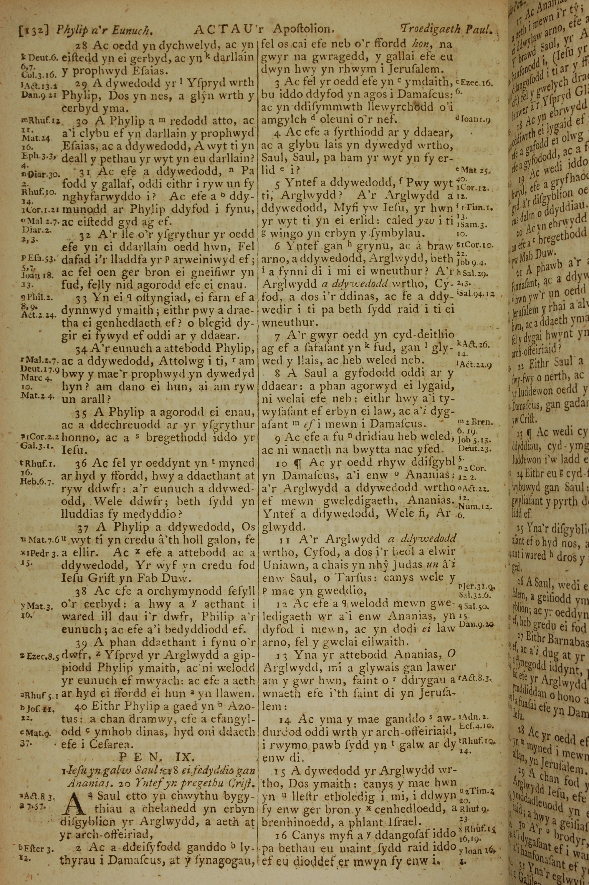 1796年威爾斯文新舊約全書 使徒行傳 8 章 28 節到 9 章 16 節