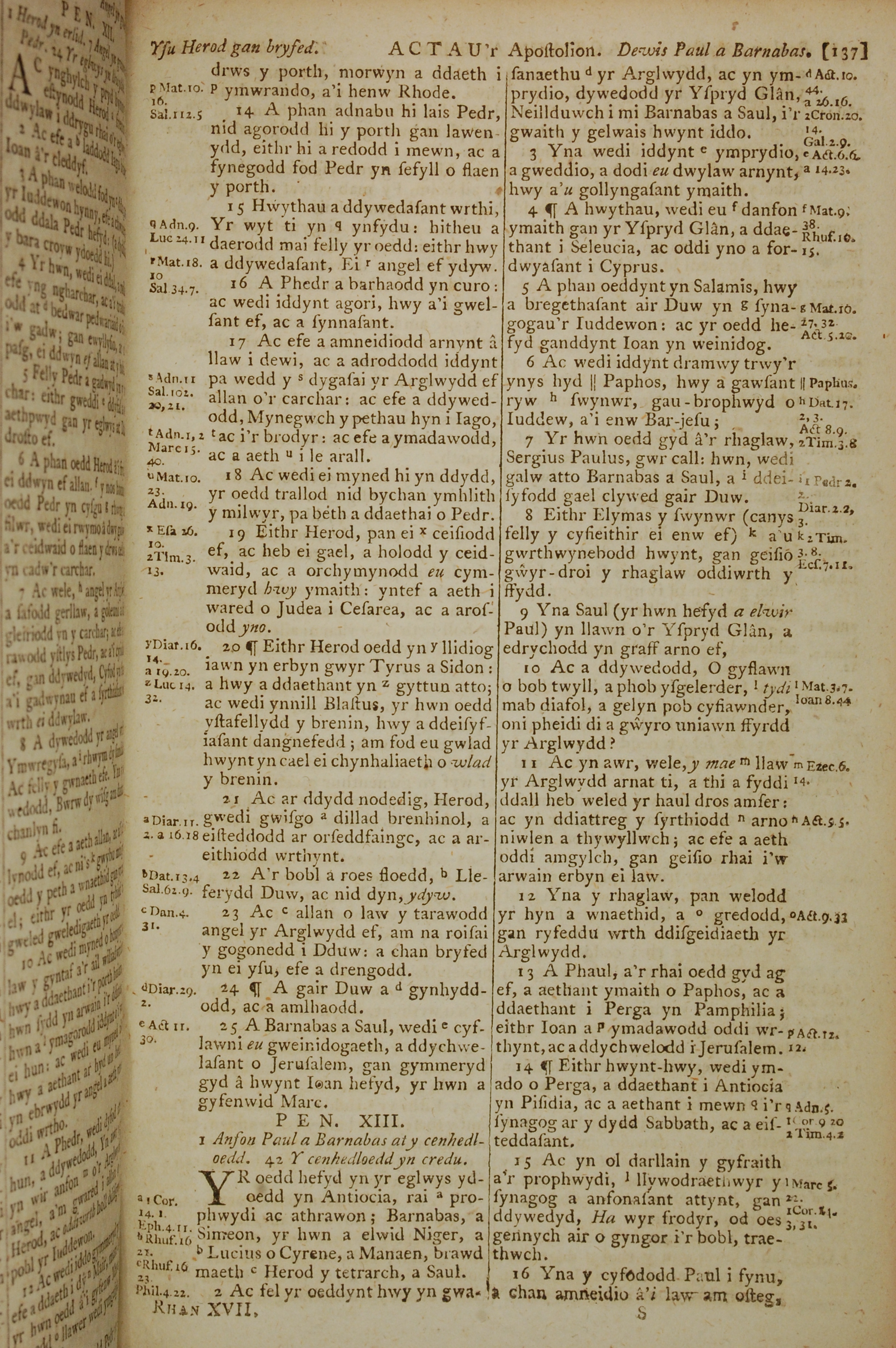 1796年威爾斯文新舊約全書 使徒行傳 12 章 14 節到 13 章 16 節