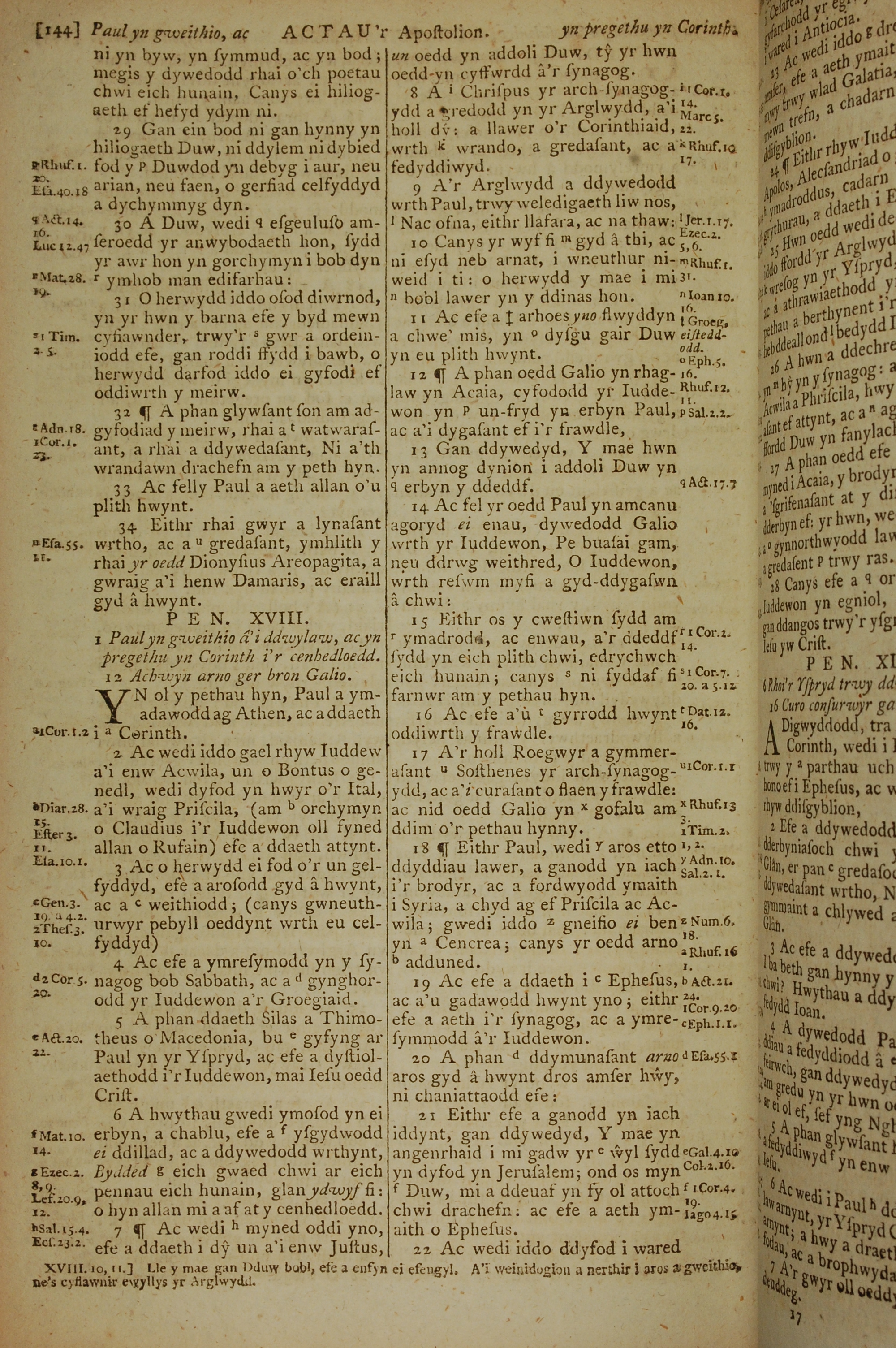 1796年威爾斯文新舊約全書 使徒行傳 17 章 29 節到 18 章 22 節