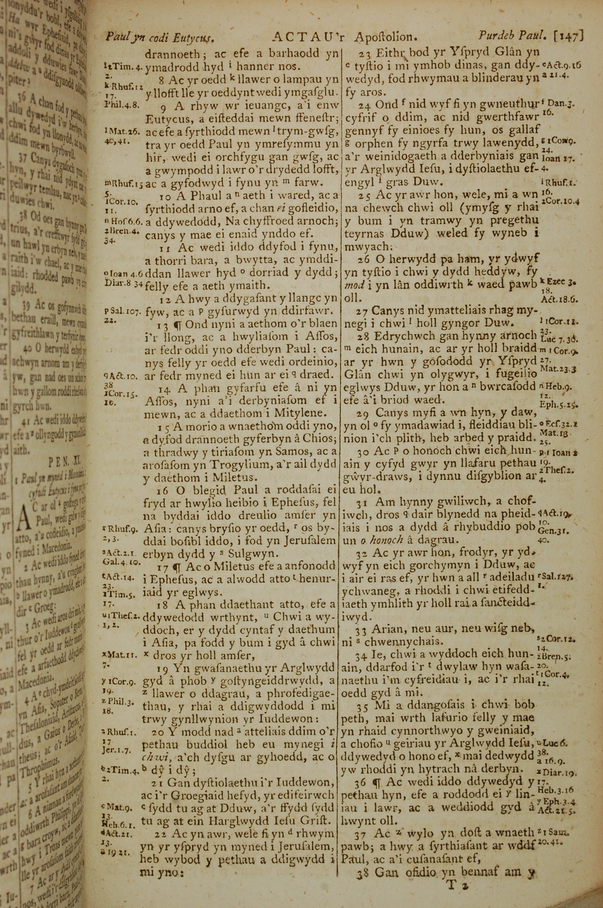 1796年威爾斯文新舊約全書 使徒行傳 20 章 8 節到 20 章 38 節